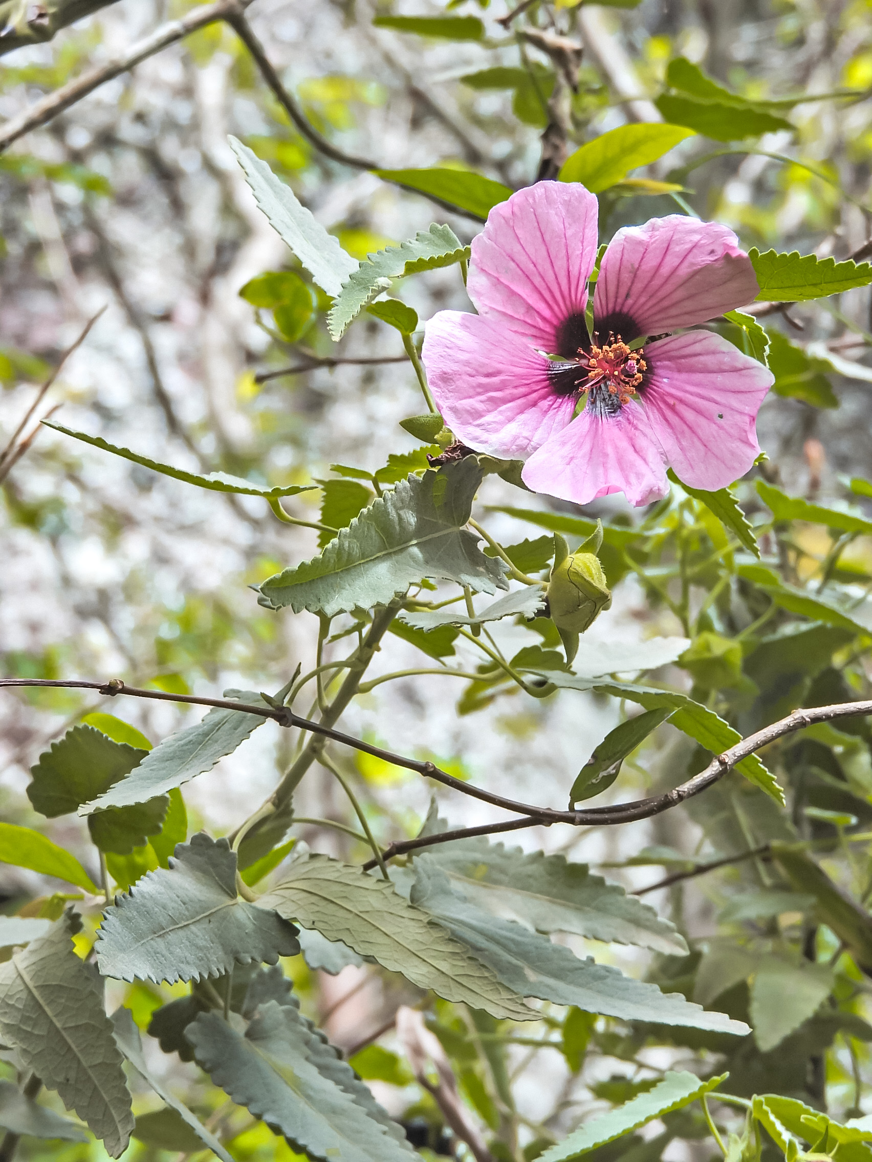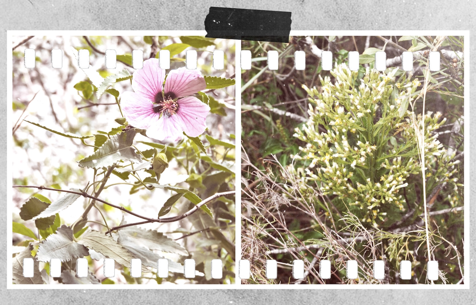 A Pavonia (à esquerda) só existe no território do PAT, tem flores roxas a rosadas.