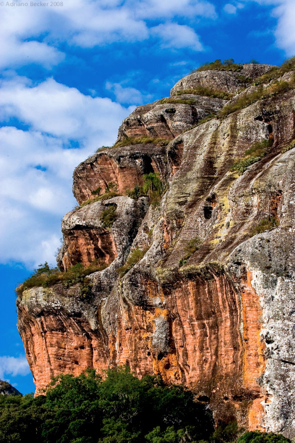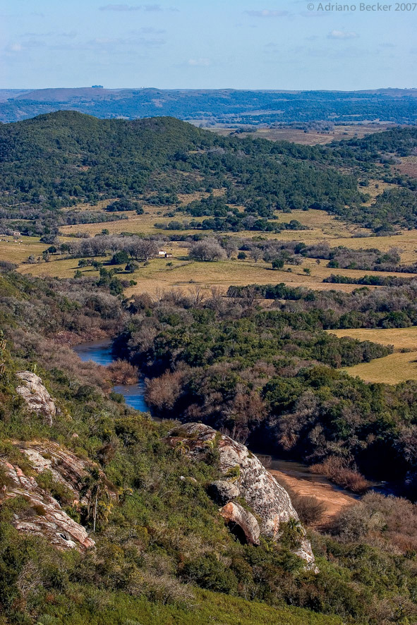 Relevo movimentado com formas arredondadas, com com diversos tipos de vegetação, como campos, vassourais (vegetação arbustiva), florestas em encostas com declividades acentuadas e ao longo dos rios, riachos e arroios.
