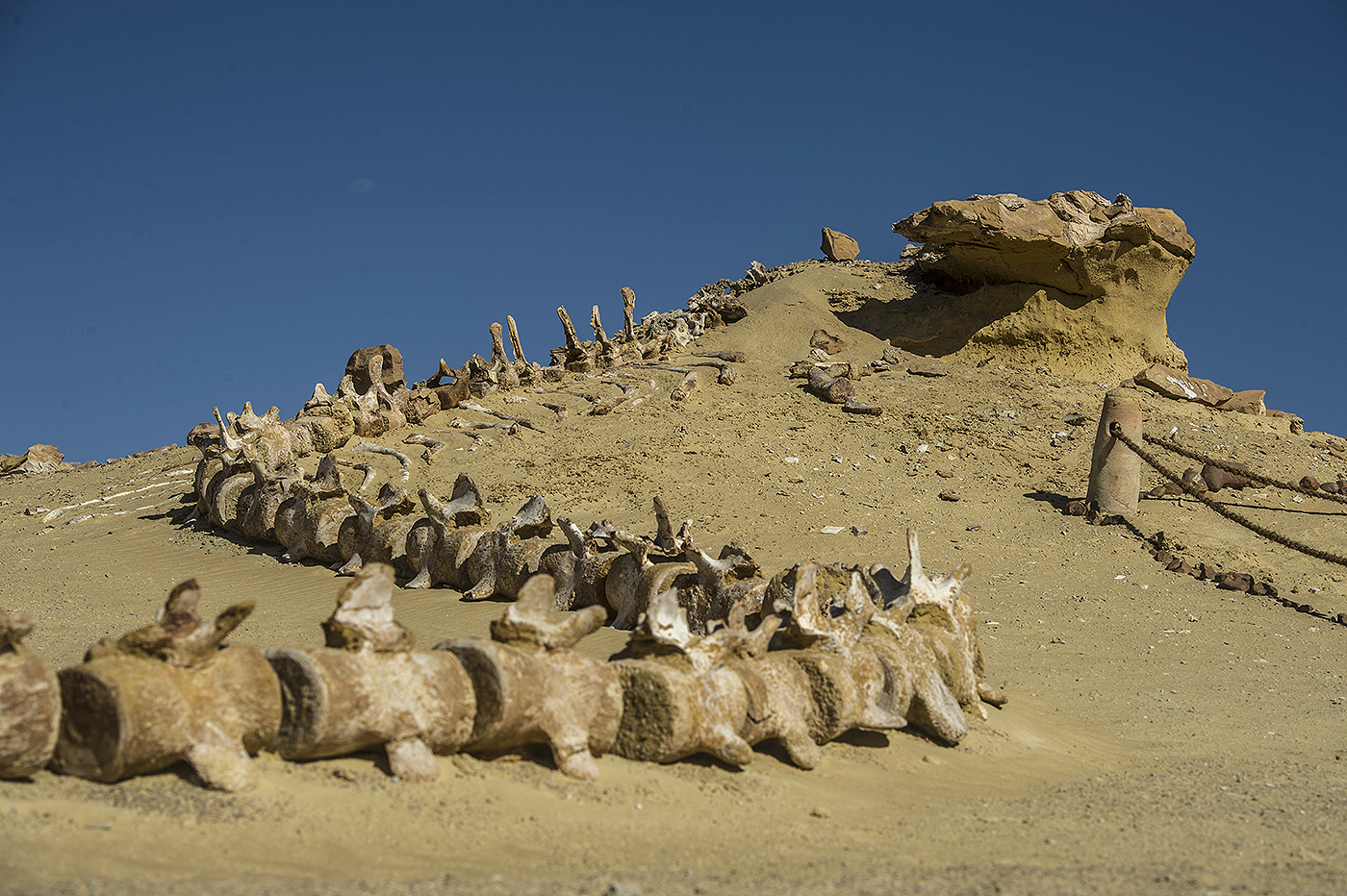 Uma foto tirada no dia 14 de janeiro mostra o fóssil de um ser marinho no Wadi el-Haitan Fossil and Climate Change Museum, em Fayoum, a 60 km de Cairo. Foto: Khaled Desouki/ AFP