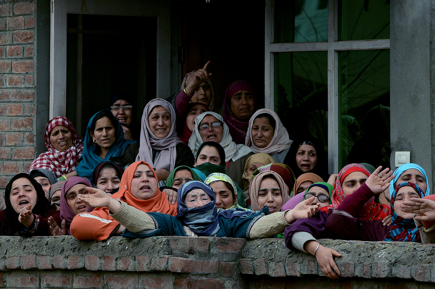 Mulheres da Caxemira, na Índia, protestam durante o funeral do estudante de engenharia Owais Bashir Malik, encontrado morto, com a garganta cortada, perto dos trilhos de uma ferrovia em Srinagar, no dia 14 de janeiro. A polícia disparou tiros de advertência e gás lacrimogêneo para dispersar centenas de manifestantes que gritavam slogans anti-Índia, acusando o Exército indiano de ter torturado e matado o jovem. Foto: Tauseef Mustafa/ AFP