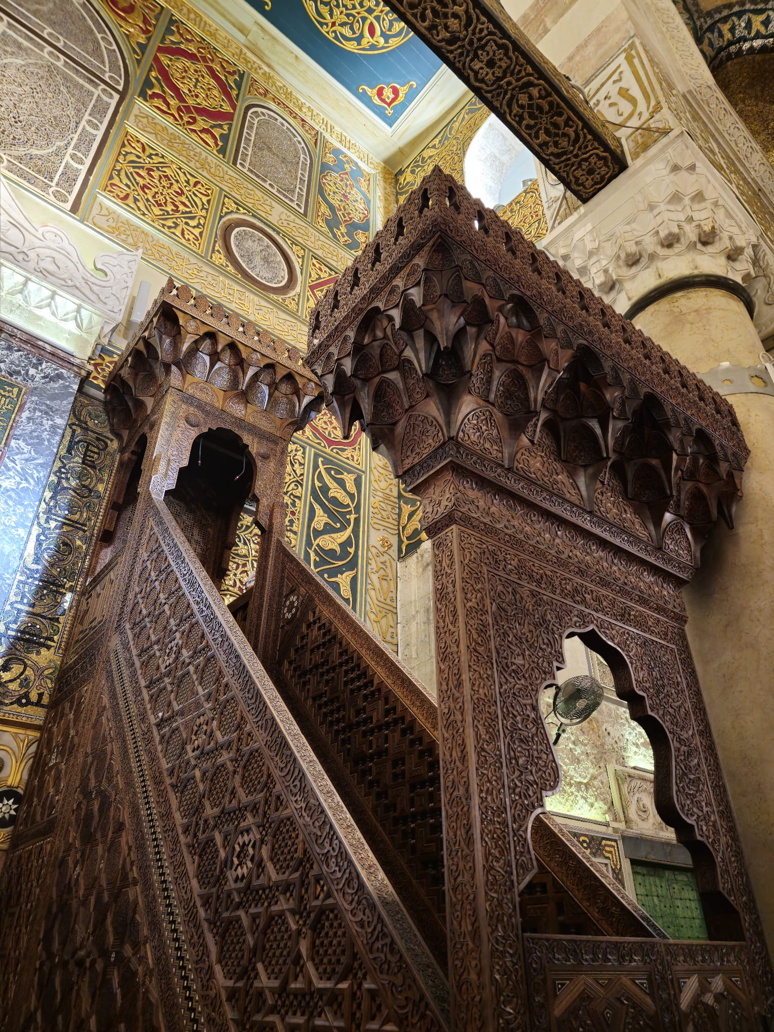 The Minbar was created from 16,500 pieces and the amazing thing was that no nails or glue were used in the construction of the Minbar!