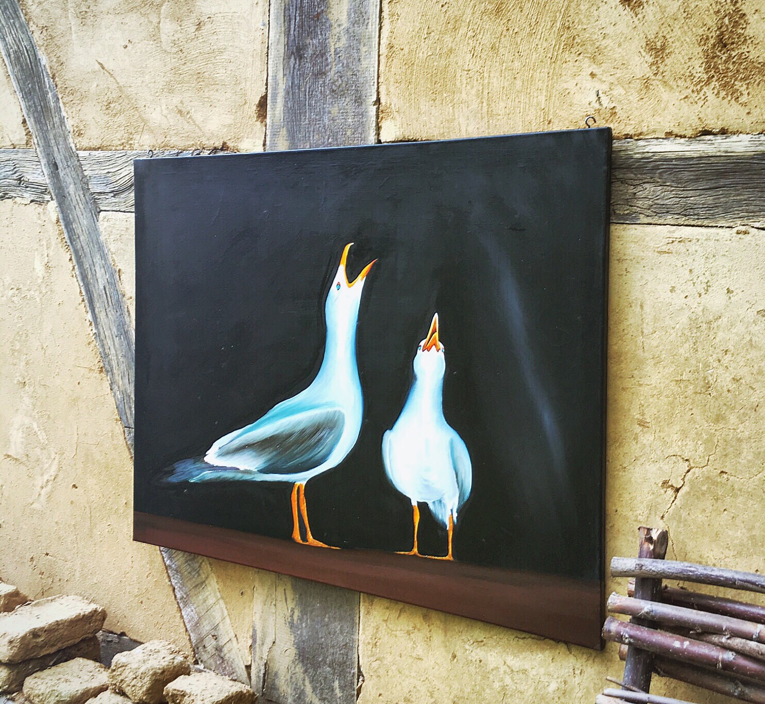 I leave the art in the barn and I move to a second building. This building houses some very interesting work. One in particular has drawn a crowd...of men...I can't get in to see what is going on.