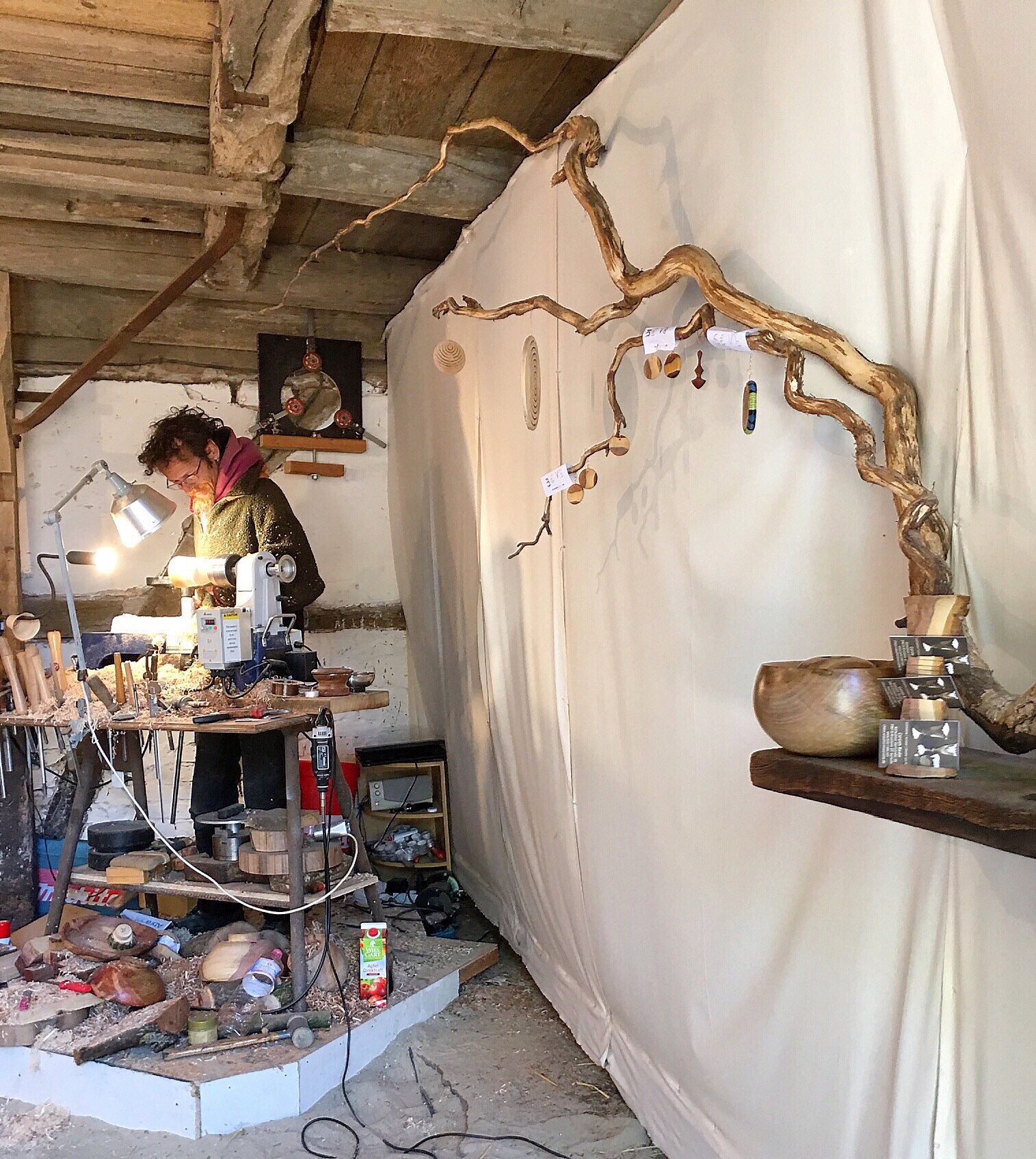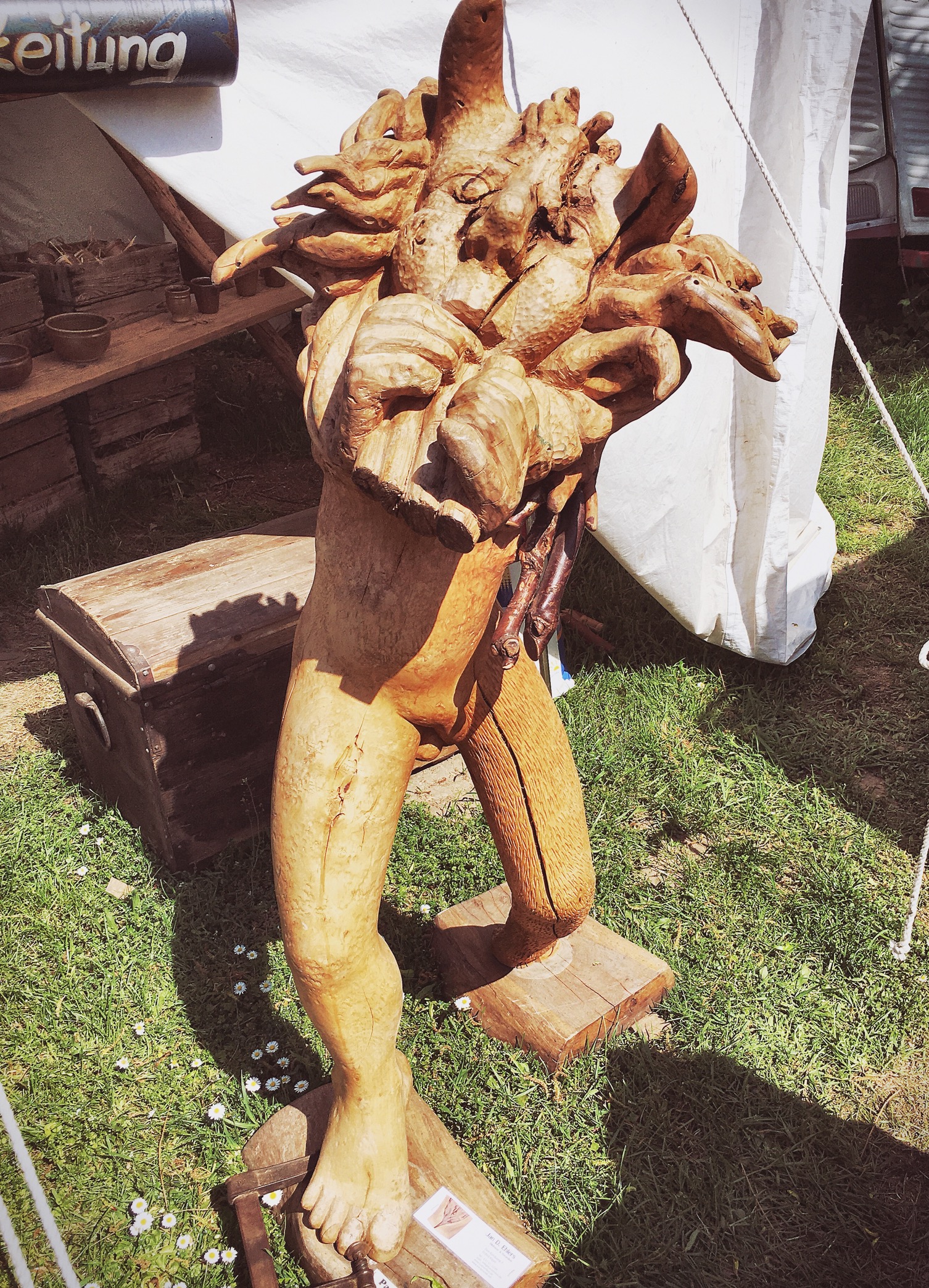 After greetings and an introduction to Olaf's sister in law, Dagmar, we continue the slow meandering among the artisan's craftwork. I have seen all the this several times and I think this is the second time here for Olaf but Johannes and Dagmar have not been to the Mützingenta this year.