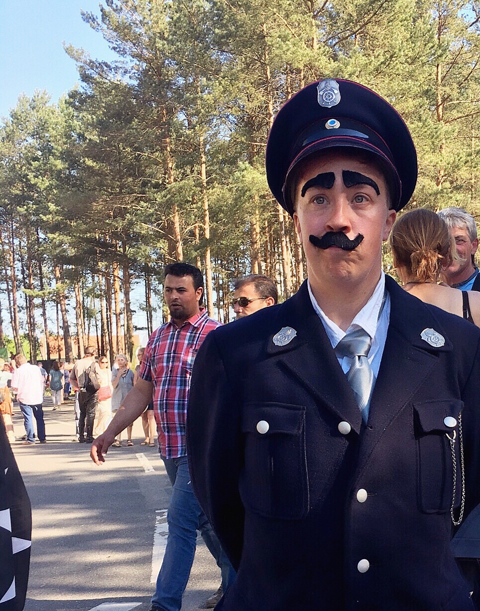 It turns out he is from Georgia but has been away from the US for 23 years. He lives in the upstairs loft of one of the barns with his wife. He asked why I was here and I said it was for the KLP (which he did not seem to know much about) but he said he is here to spread good karma. I am still not sure why he selected me out of all the other people walking by. After promising to stop by later, I am able to complete my journey to the center of the village to find Cesar Circus Performer.