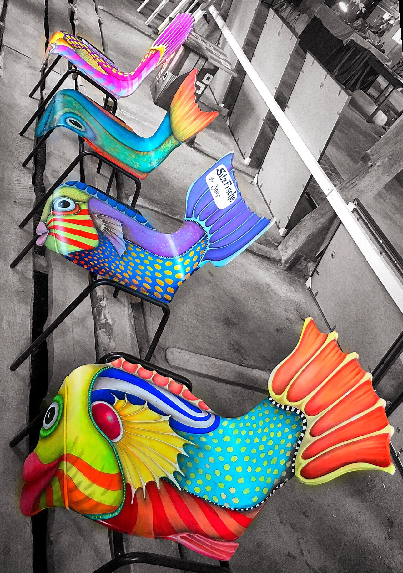 After walking around outside...the sculptures in wood and metal...the handmade wool yarn...the jewelry...I head into one of the barns. The artist showcased here...I don't even really have words...