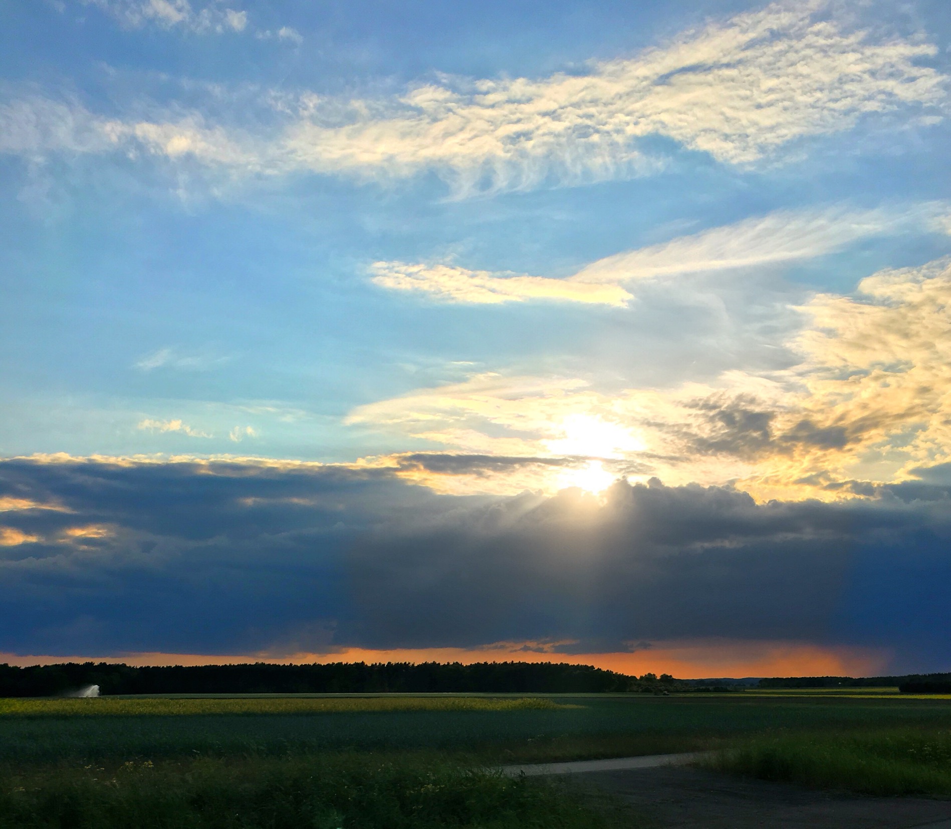 Jens is still not home (I check again on my way out) so I drive back to Lüchow for some food to start a few hours of work. Since it is Tuesday, Olaf asks if I would like to join him at the weekly "therapy group" at Lina's Bottega in Dannenberg around 21:00. "Yup," I reply. So at 20:30ish I start driving. I notice that there is an absolutely beautiful sunset this evening which I am able to capture from the car.