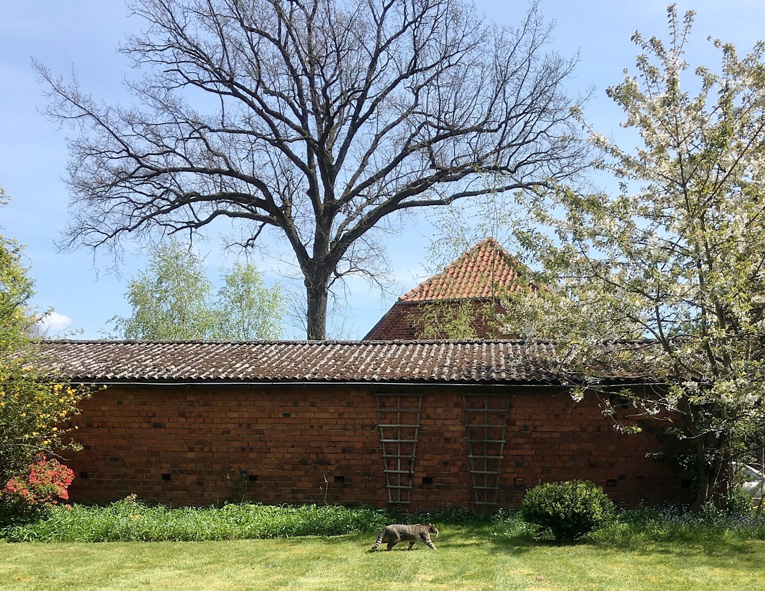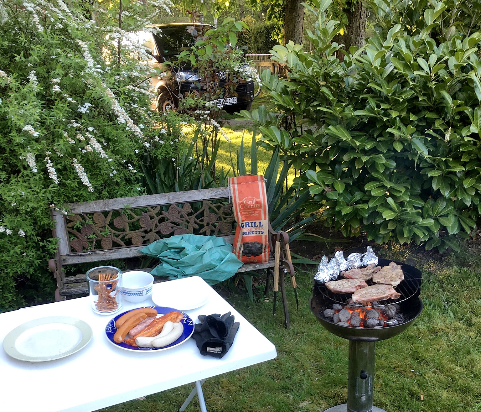 After I eat my sausage and complete my circuit of the Mützingenta, I walk back to my car at Jens' - I stop in and thank him for the use of his driveway for parking. One of his friends from Hamburg (that I know) is there and they are having a barbecue. They invite me to stay - and I am happy to do so. I also have a conference call so I will be able to use his wifi for this.