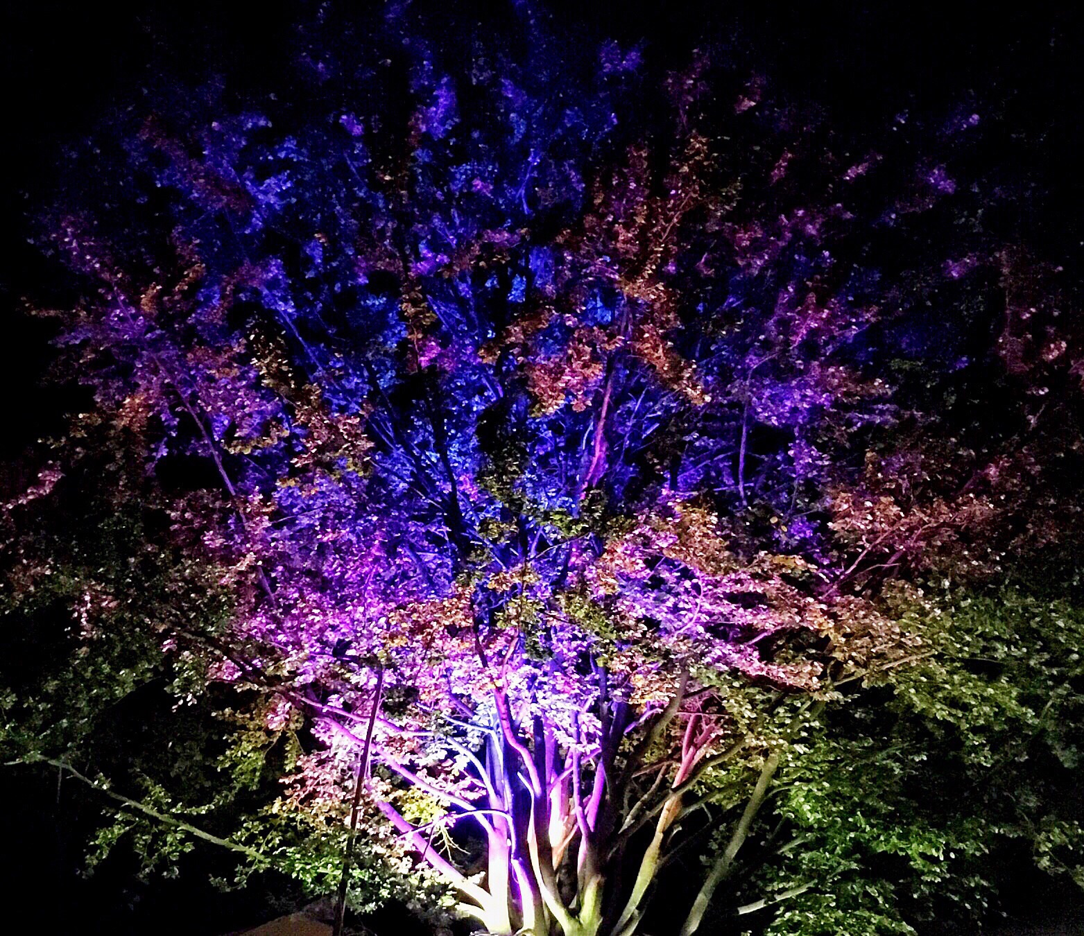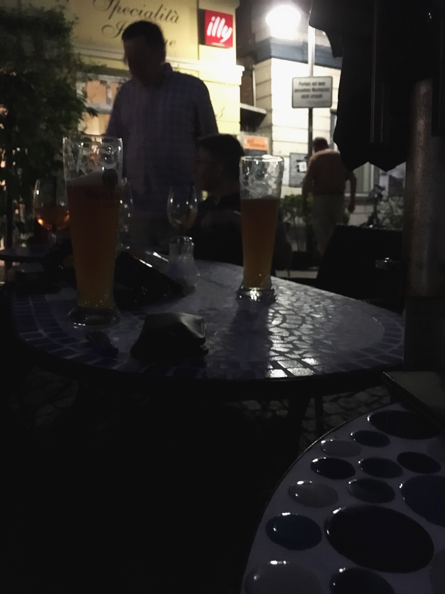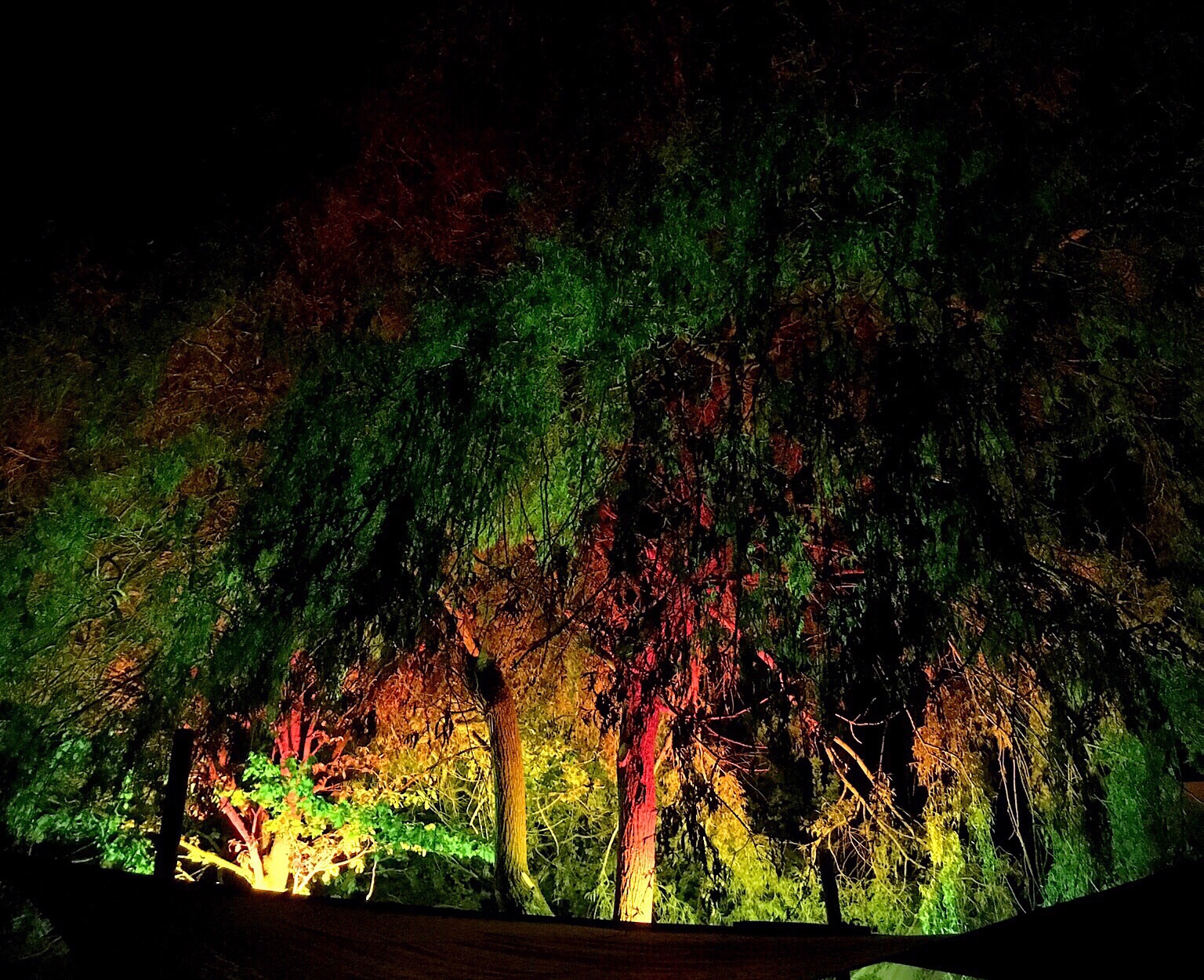 The music is good and we are all enjoying people watching and soaking up the atmosphere and listening to the music. After an hour or so, Jens and Melli indicate that they are heading back to the house...Olaf and I stay for more music and another drink. This year, the trees have been swathed in colorful lights and we walk around to see them.