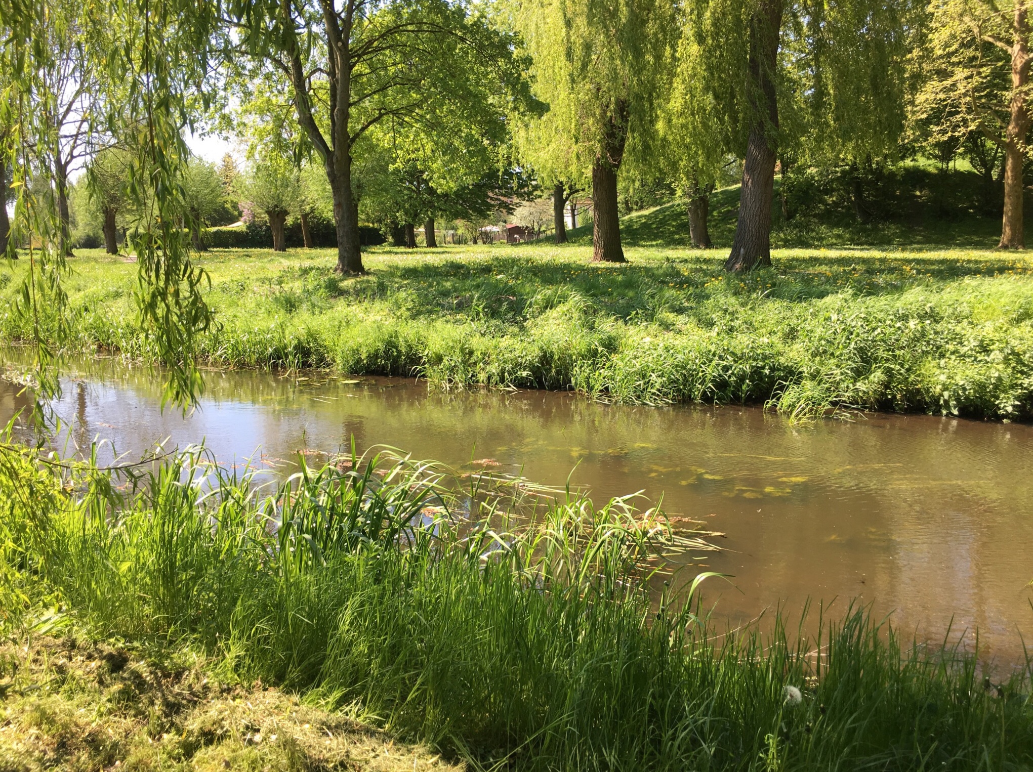 But, as it is close to 11:00, I know that I will need to find another place to put my car while I am waiting for him. I could leave to the Mützingenta but there is no cell signal so I would not know if he is able to join me there. I will wait in Lüchow and do some work while I wait. But I still need to move the car. As I drive around the block (so to speak) I spy a small park close to the apartment...and a parking space (great!).