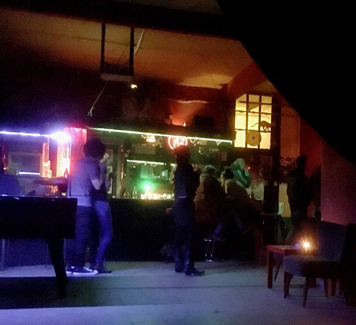 I remember Neu Tramm last year as having some very interesting bands from several countries. We pay the entrance fee, grab a drink, and settle into some vacant old armchairs to enjoy some new sounds. Luckily, it is not as crowded as it has been other times so we can just enjoy the music without fighting a large crowd for space and our vantage point allows us to still (somewhat) hold a conversation.