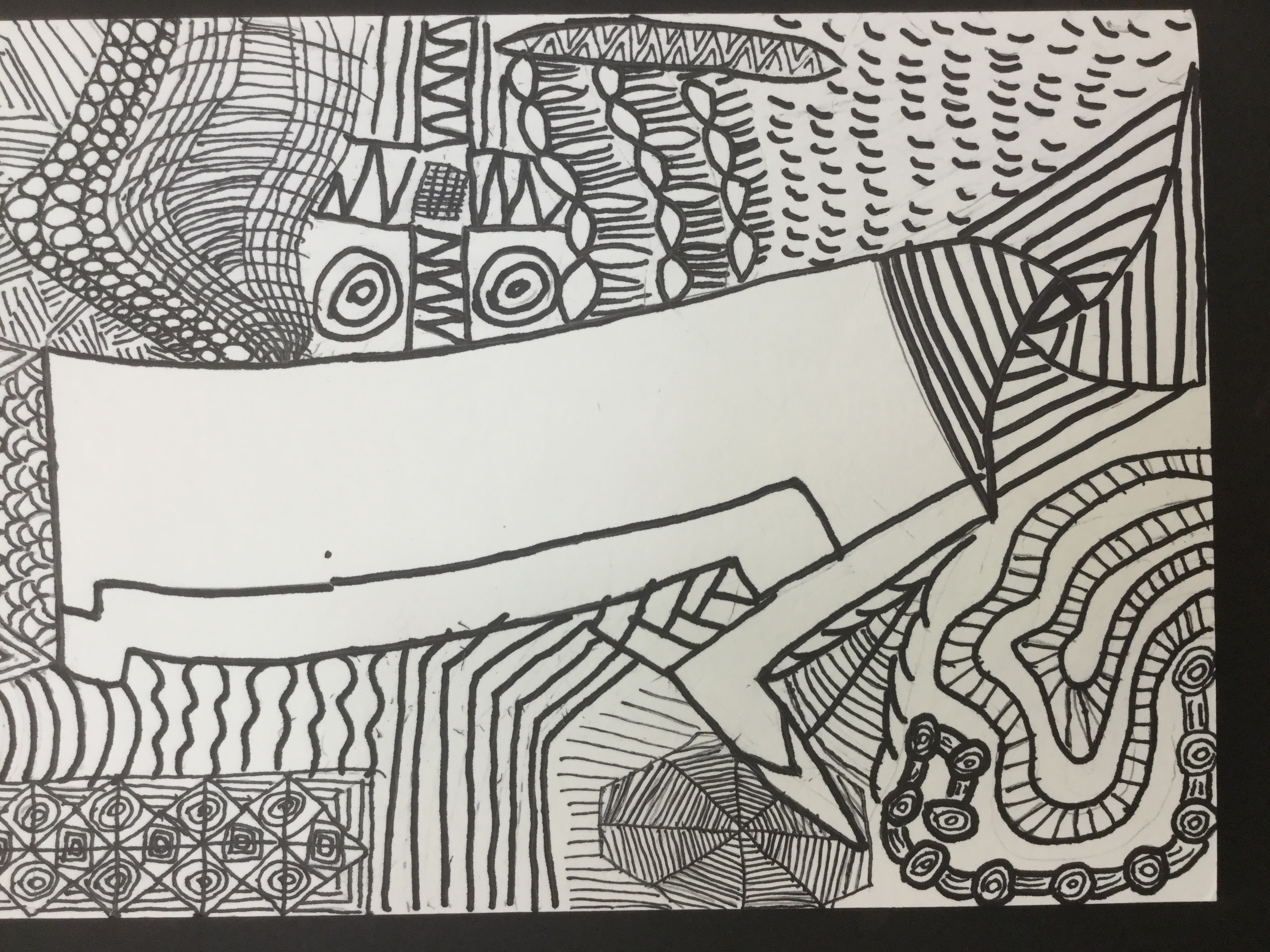 Form was used in order to create the illusion of three dimensional buildings. Value was used in order to provide an appropriate sense of light hitting the buildings during sunset, and to further the illusion of form in some areas such as the pedway. Line was used in almost every aspect of this work. It formed the buildings, was used on the crosswalk and signs, to form letters, and much more.