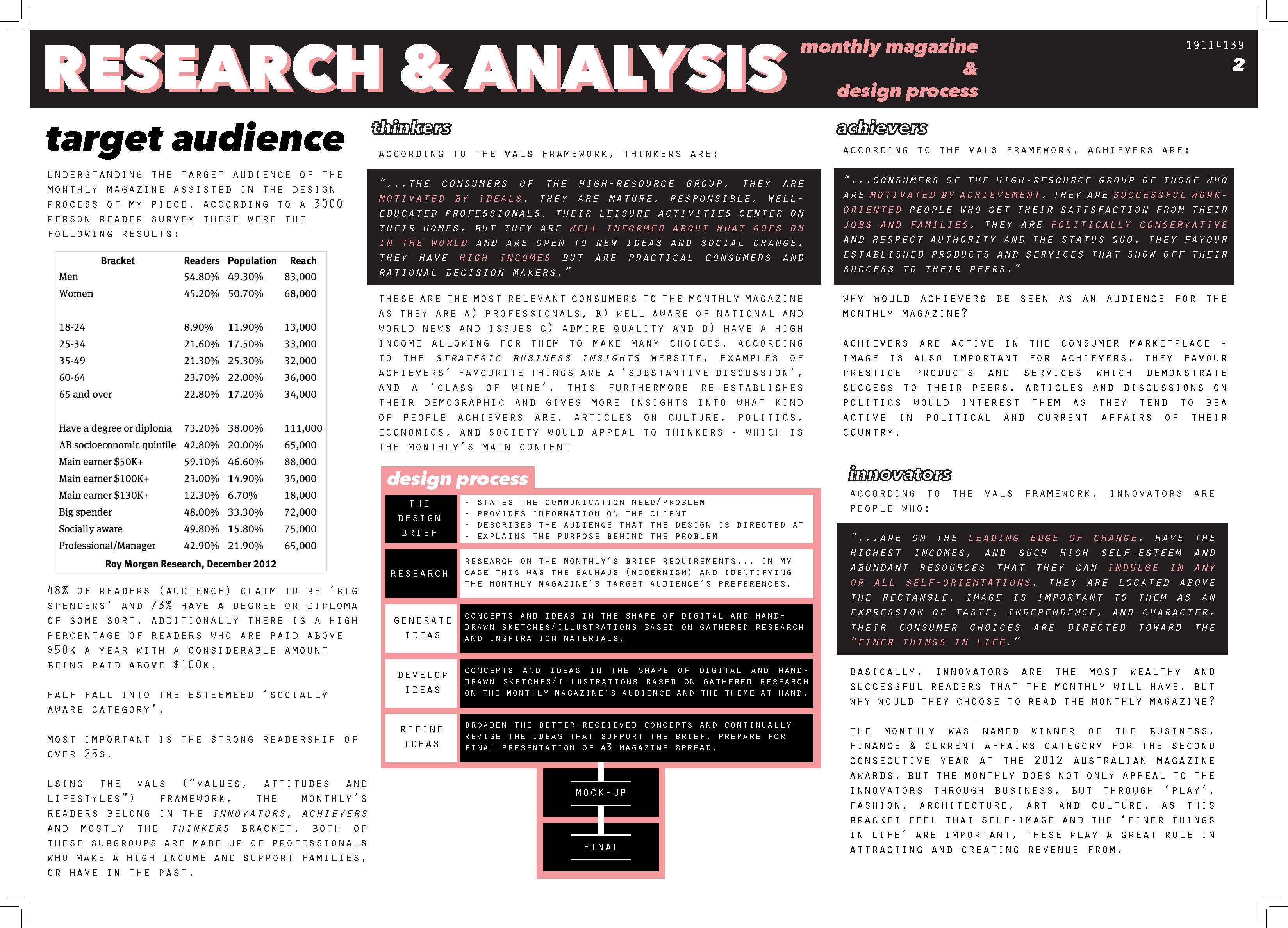 The research stage reviews information such as the history of the design problem, inspirational previous solutions, client and target audience research and identifies potential obstacles.