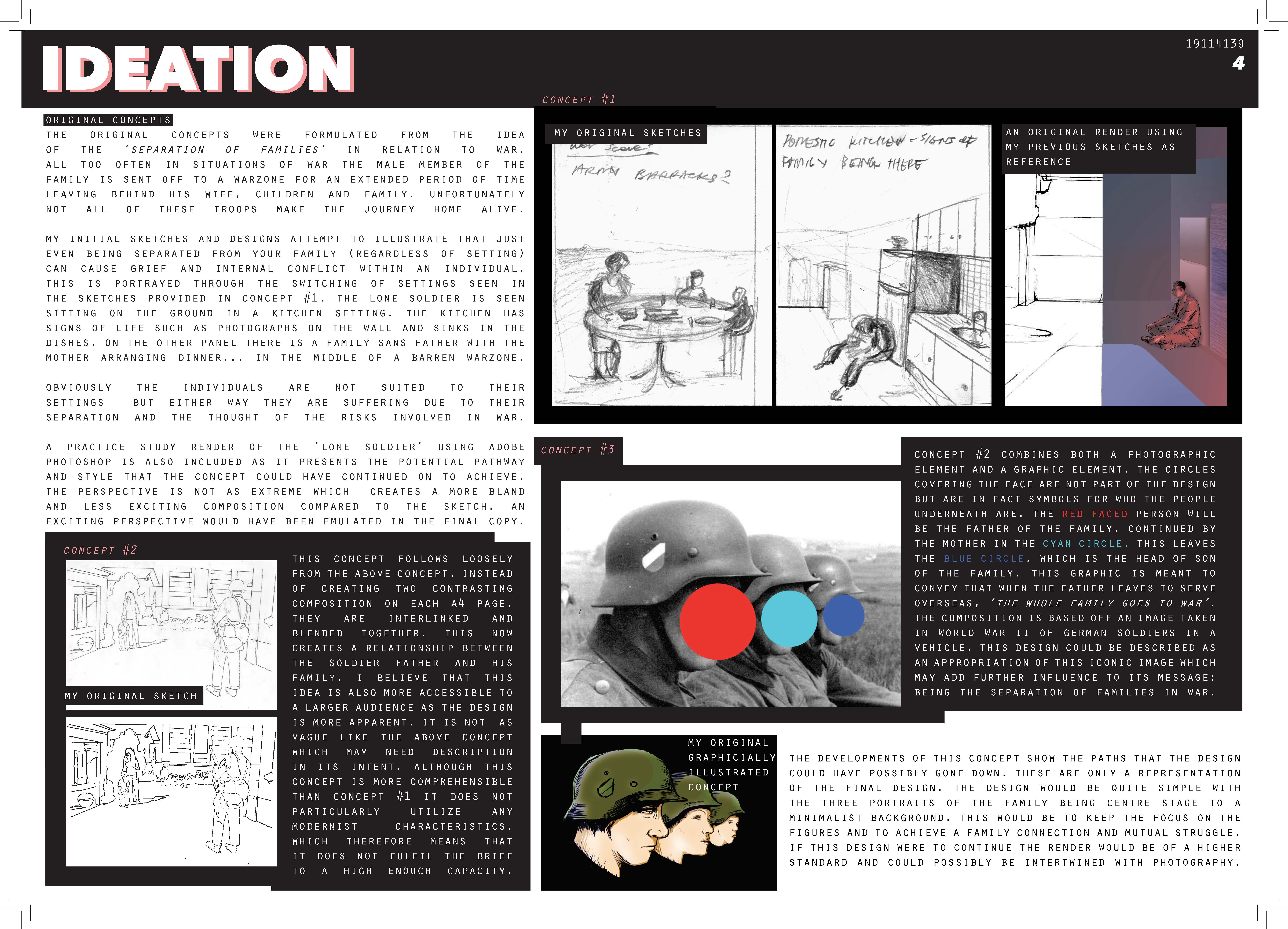 Ideate is the stage where the clients motivations and needs are identified and ideas are generated to meet these constraints through brainstorming and sketching.