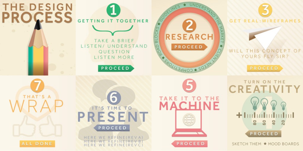 The seven step design process is used by graphic designers and photographers to manage their time and to interpret and create a design brief and solution. Following each stage of the design process will ensure you create the best possible result for your client.