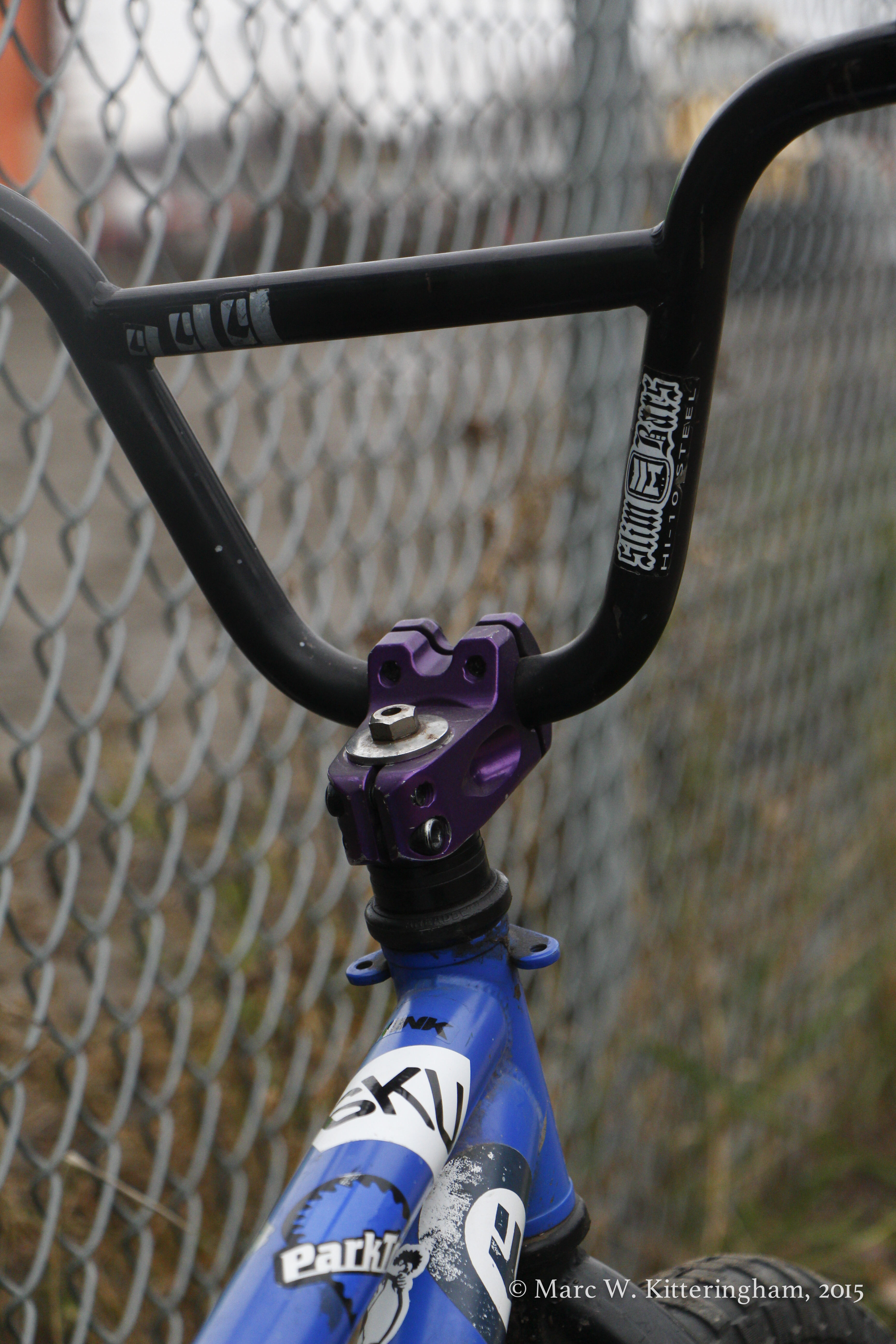 Tires – Haro Catapult 20 x 2.1 / Fork – Haro / Stem – Beat up old purple thing / Bars – Haro Slim Bars / Pedals – Wellgo (I think) / Crankset – Haro 1 piece / Brakes – Vans shoes (no brakes!)