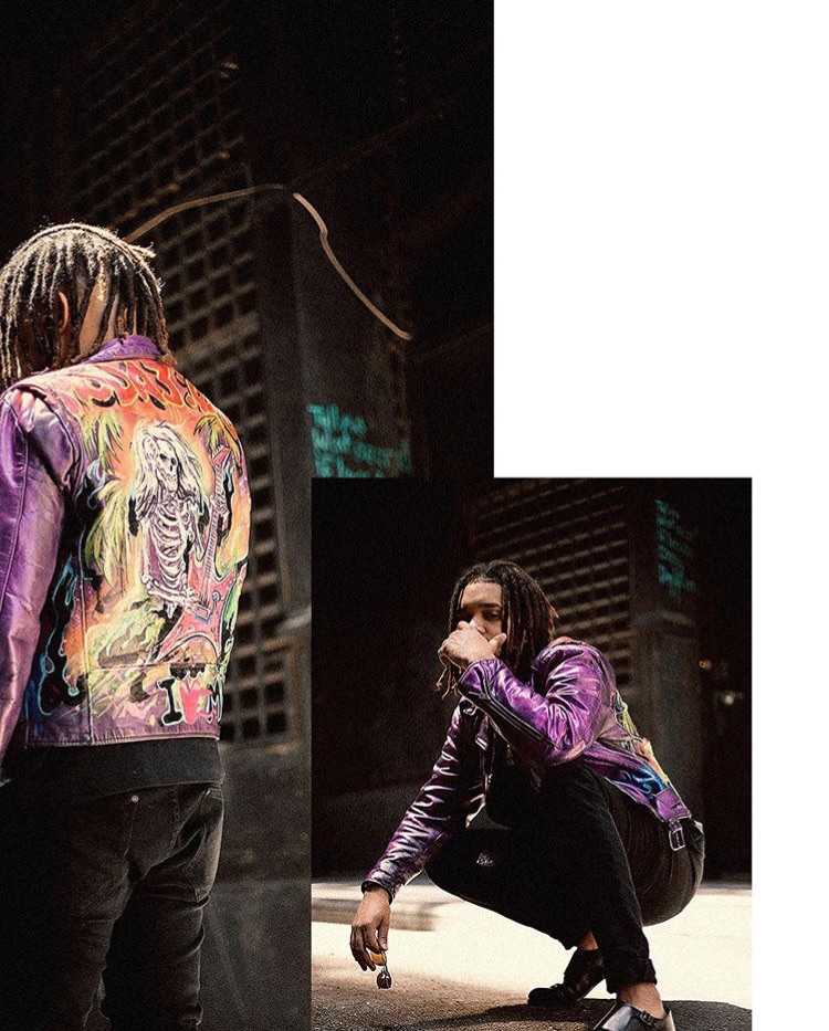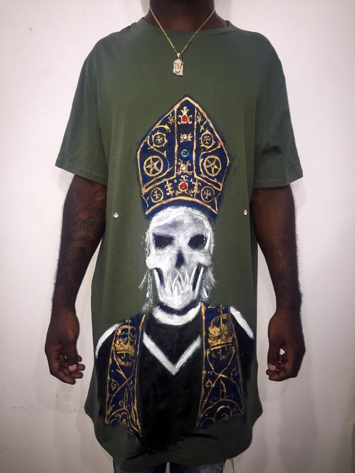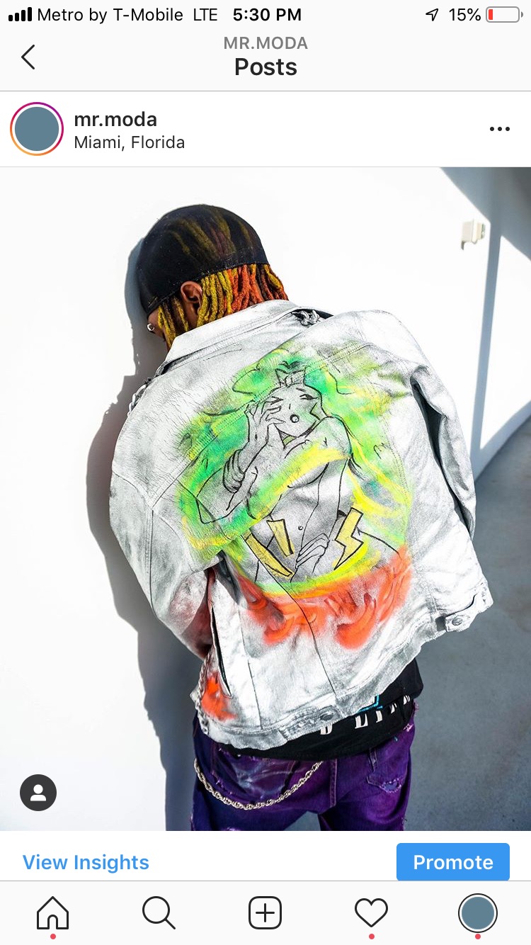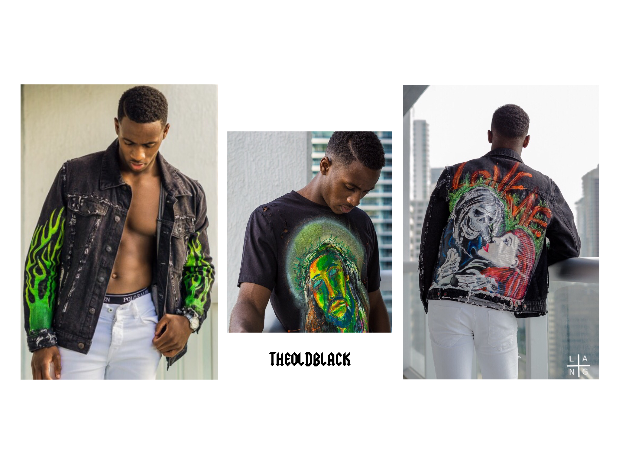 As a brand, THEOLDBLACK made their first designer debut during Swizz Beats’ X Revolt event at Art Basel 2015 where stylist Anaya Hayes showed up wearing a one of-a-kind hand painted fashion garment. Following Art Basel and the success of his “New Testament” fashion showcases soon after at the Queens Botanical Garden, Moda soon found serious recognition as an up and coming star in the fashion world and as a artist. His new found popularity attracted the likes of such superstars as OG Maco, and Derek Wise and allowed a platform to do his first group Art showcase with other artists Eddy Bogaert, Protect Your Heart , Shei Phan and Lucky Rabbit at Art Basel 2016.