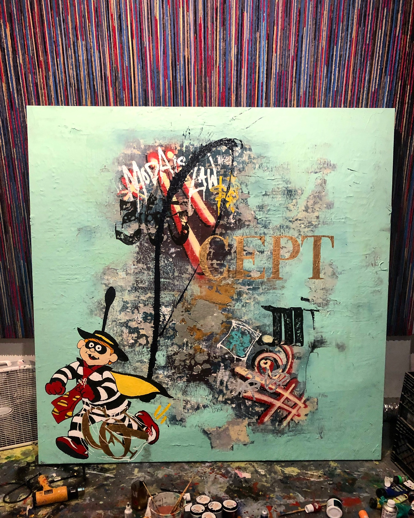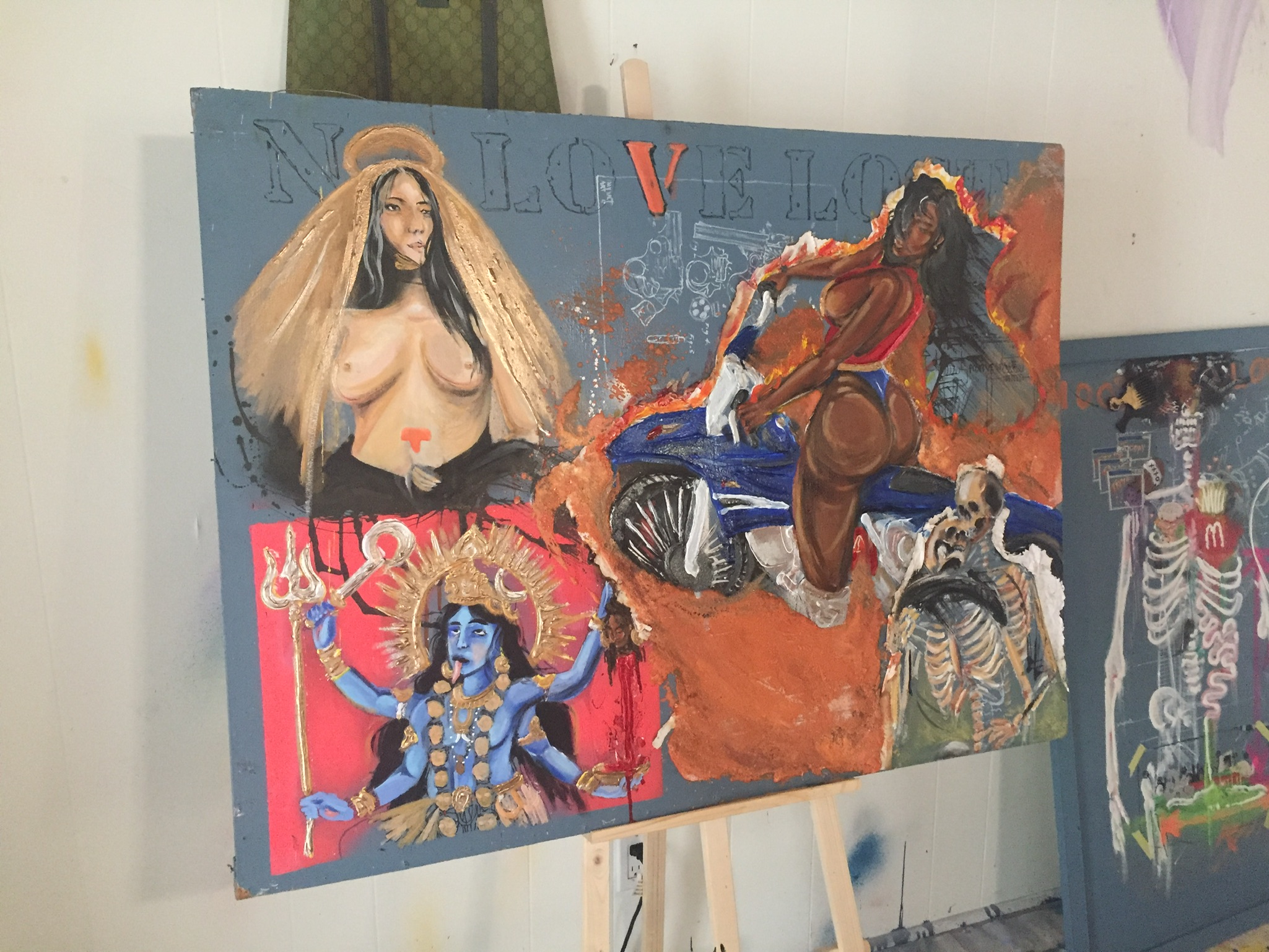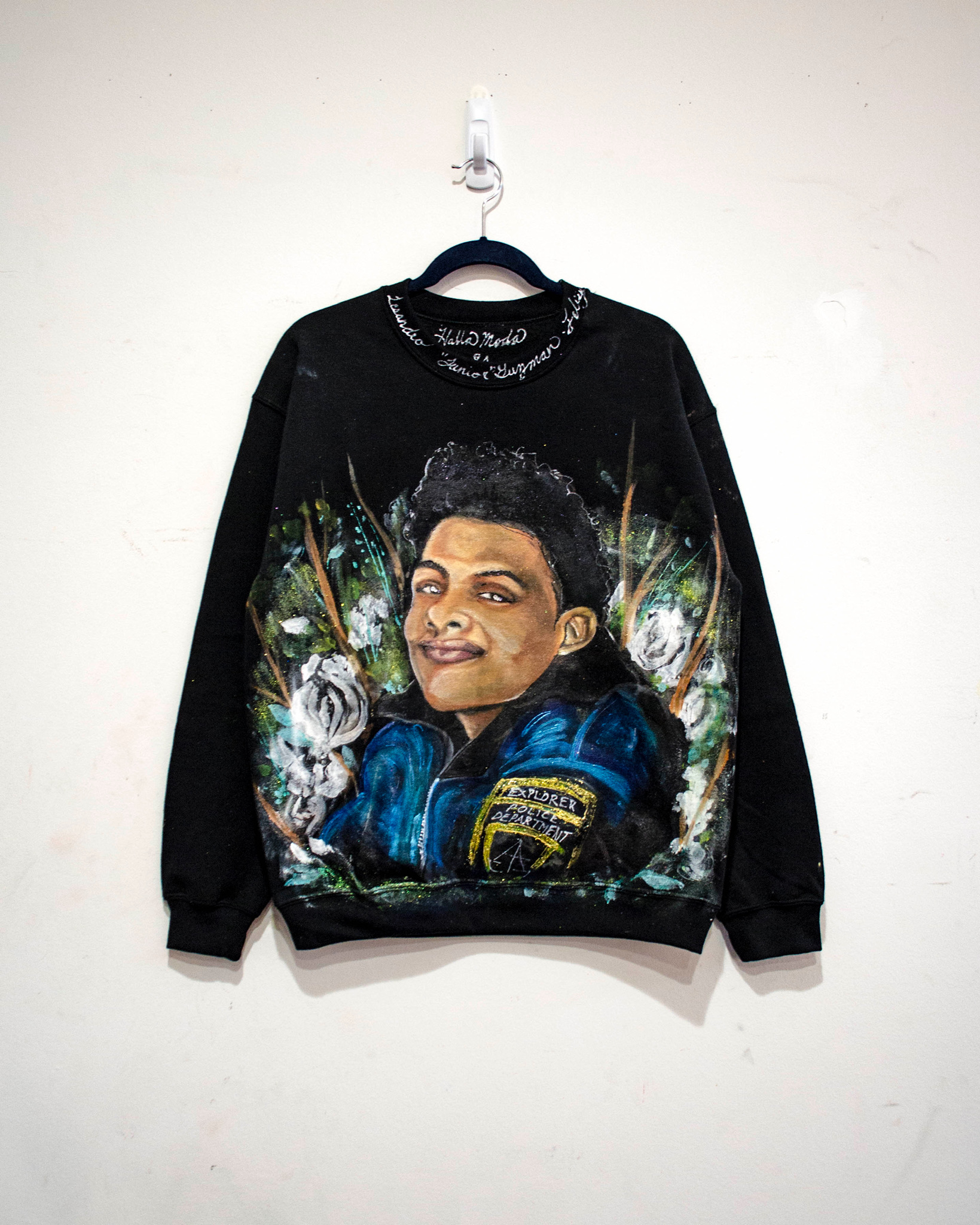 As a brand, THEOLDBLACK made their first designer debut during Swizz Beats’ X Revolt event at Art Basel 2015 where stylist Anaya Hayes showed up wearing a one of-a-kind hand painted fashion garment. Following Art Basel and the success of his “New Testament” fashion showcases soon after at the Queens Botanical Garden, Moda soon found serious recognition as an up and coming star in the fashion world and as a artist. His new found popularity attracted the likes of such superstars as OG Maco, and Derek Wise and allowed a platform to do his first group Art showcase with other artists Eddy Bogaert, Protect Your Heart , Shei Phan and Lucky Rabbit at Art Basel 2016.