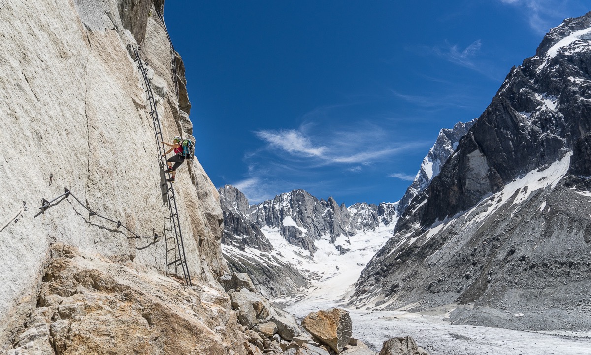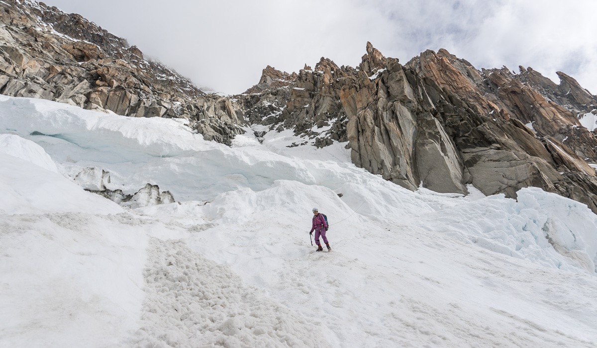 Auf nach Chamonix. Die Aiguille Verte verspricht gute Verhältnisse. Und zu diesem wilden, beeindruckenden Flecken Erde kehre ich gerne zurück. Das Panorama vom Refuge Couvercle ist dermaßen genial, als säße man auf einem Logenplatz in einer Arena für Alpinisten. Der Name der Hütte heißt übersetzt Deckel - weil das alte Refuge unter einem riesengroßen Boulderblock errichtet worden war. Von hier blickt man in die faszinierenden Wände der Grande Jorasses. Hinüber zum Mont Blanc und den vorgelagerten wilden Zacken des Teufelsgrates, der Aguilles, so vielen steilen Zacken und genialen Graten, auf denen die besten Alpinisten ihre Geschichten schrieben.
