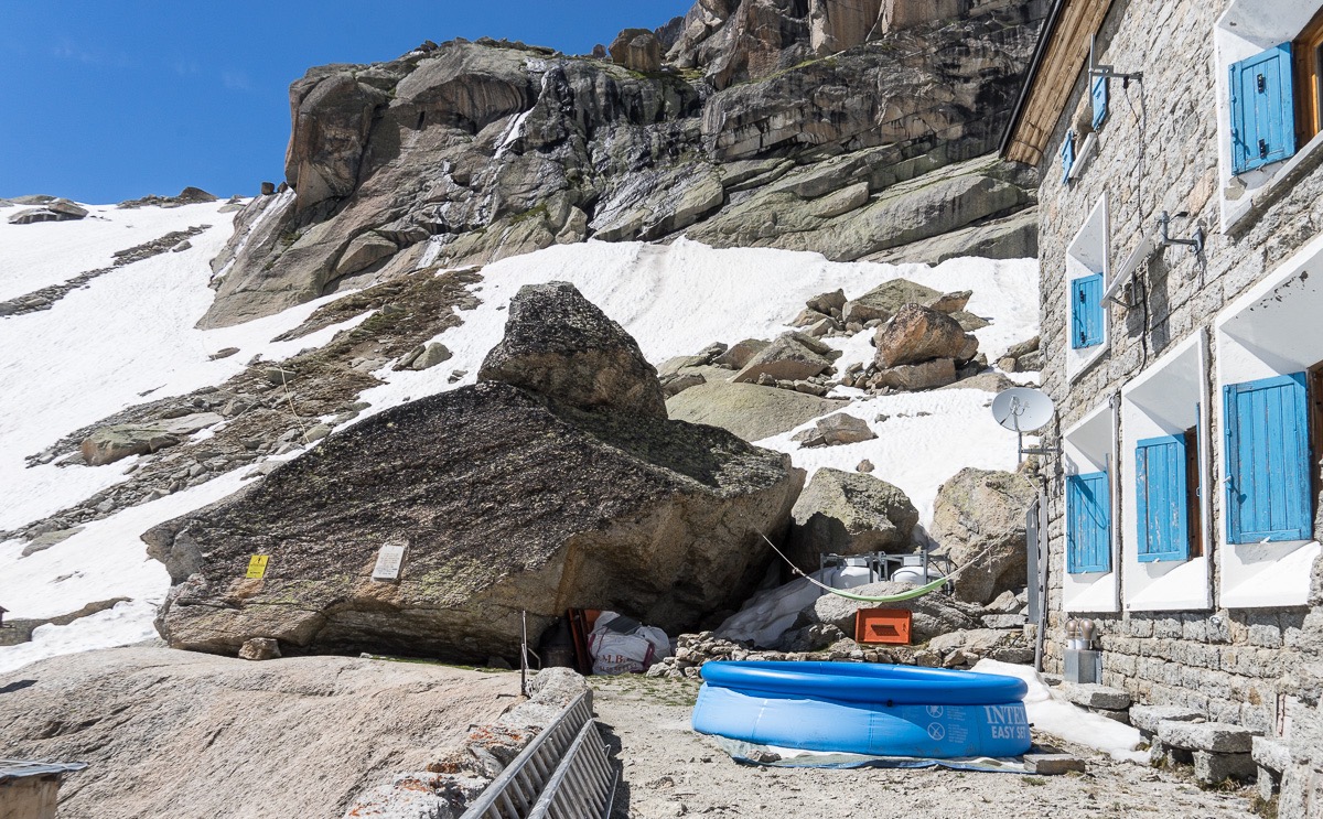 Wir kommen nicht mehr aus dem Staunen. Spätestens, als wir von einer gewissen Madame Manon Navillod Davoine freundlich begrüßt werden, sind wir ganz hin und weg. Und unsere Befürchtungen werden zerstreut. Manon, geschätzt am Anfang ihrer 30er, verbringt den Chamonix-Sommer lang (also drei Monate) alleine hier in diesem hintersten Mont-Blanc-Winkel. Und verpflegt alle Bergsteiger, die auf den 15 Lagerbetten Platz haben. Richtet in aller Herrgottsfrüh (ihr wisst schon, mitten in der Nacht) das Frühstück. Hat selbst nur eine halbe Matratze zum schlafen. Falls sie dazu überhaupt kommt. Wann sie denn schläft? "Wenn das Wetter schlecht ist", sagt sie. Das kann dann wochenlang so sein. Oder tagelang eben nicht. Schon vormittags kommen die ersten Gäste. Wollen verpflegt werden. Mit Spaghetti Cabonara. Frischem und köstlichem Kuchen. Sie bäckt sogar das Brot selbst. Zaubert aus allem, was hier oben längere Zeit haltbar ist, etwas Frisches. Der Hubschrauber kommt zweimal in der Saison. Zu Beginn - und bringt mittendrin Nachschub.