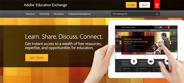 - Ressources pédagogiques gratuites — Le portail Adobe Education Exchange permet à vos enseignants de bénéficier de ressources pédagogiques et de développement professionnel gratuites, mais aussi d’échanger avec leurs collègues pour maîtriser rapidement les applications Creative Cloud et stimuler la créativité en classe.