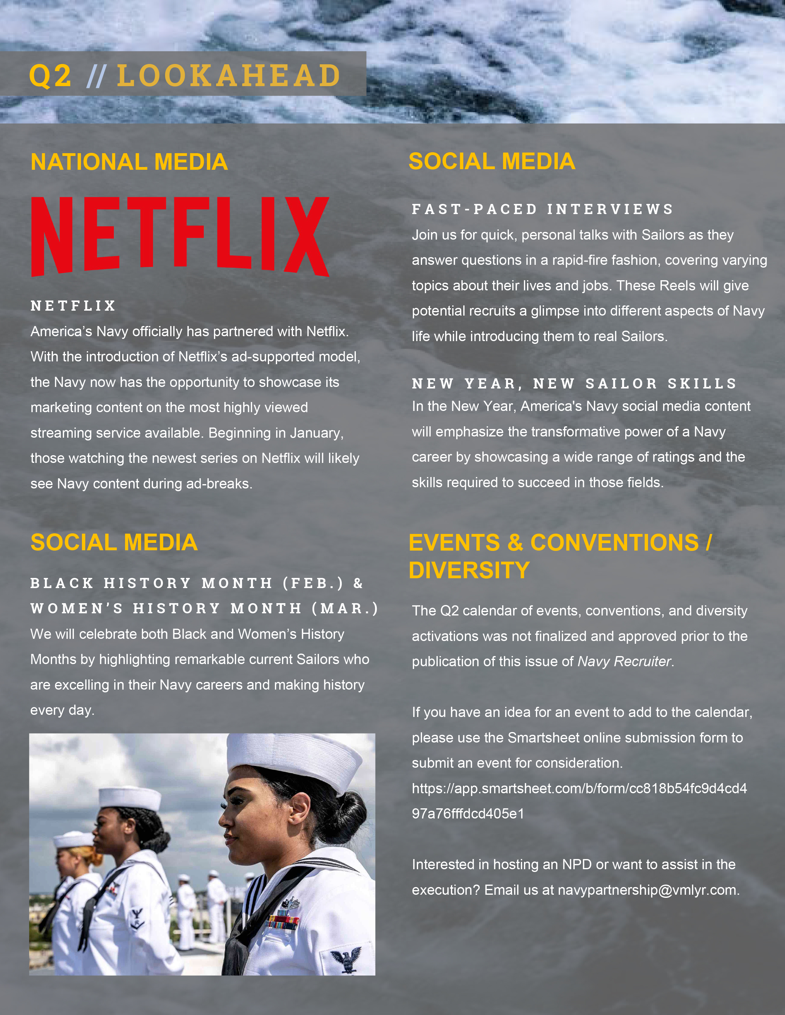 The entire Navy is invested in helping us close the gap between what we are producing now and what we need to produce to achieve our mission in FY24. We will continue with our Every Sailor a Recruiter program, and have expanded the program to include the Navy at large so that we can capitalize on Sailor referrals to make our recruiters more efficient and effective.