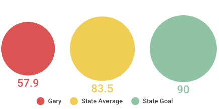 Despite the struggles, Pruitt has seen successes since she took the helm as district superintendent four years ago. Her administration has reduced Gary’s failing schools by 58 percent over the last three years. District-wide ISTEP+ passing rates – while still relatively low – have improved steadily since 2009.