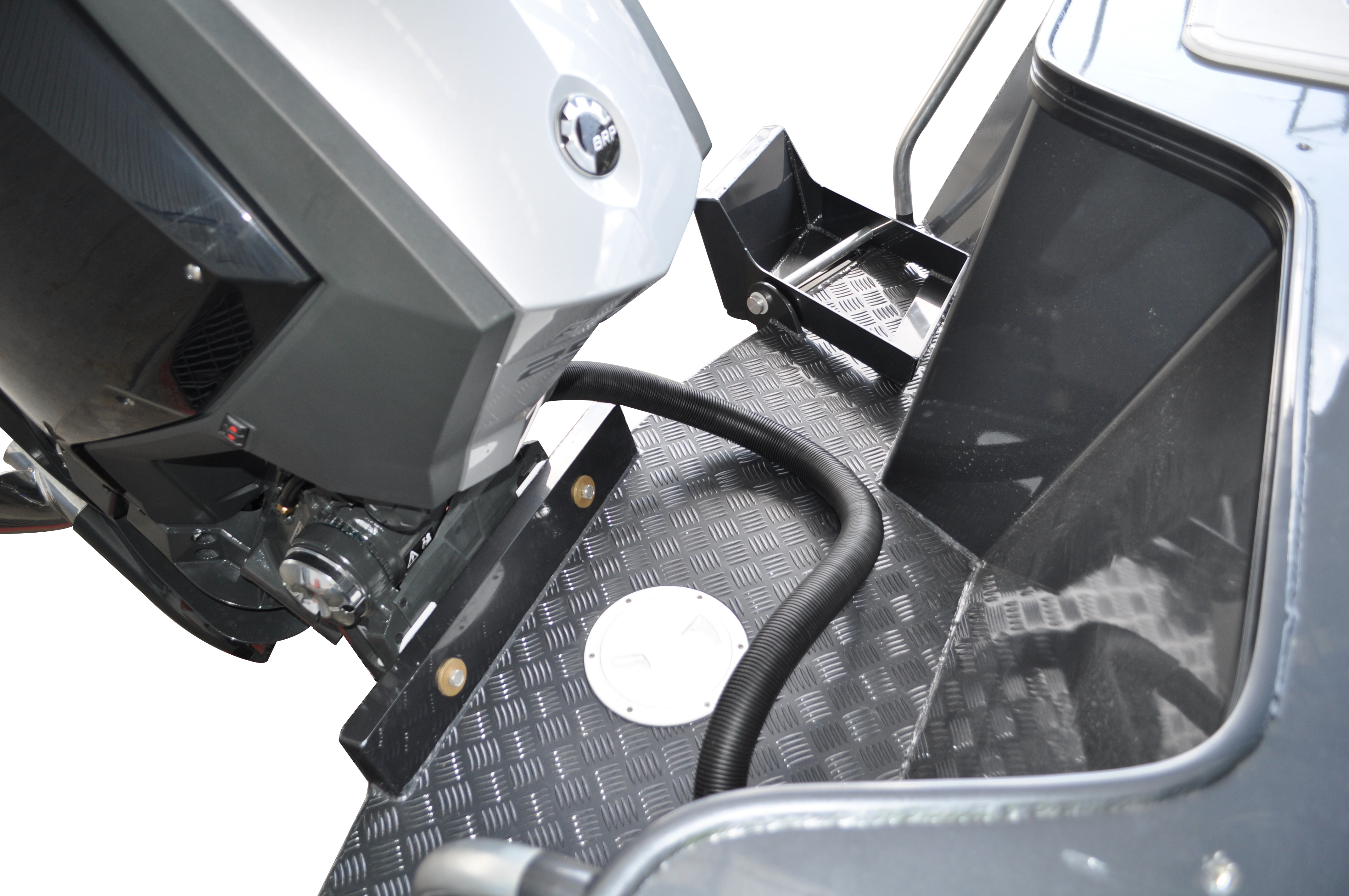 Evinrude reimagined the transom of your boat and decided to eliminate the hoses and clutter. By integrating the hydraulic system into the overall design of the engine, the G2 looks "cleaner" and is also easier to install thanks to a redesigned transom bracket that minimises flex under load.