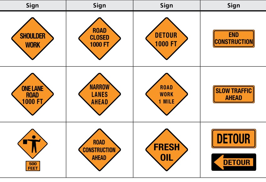 Various traffic control devices are used in construction and maintenance work areas to direct drivers or pedestrians safely through the work zone and to provide for the safety of the works.