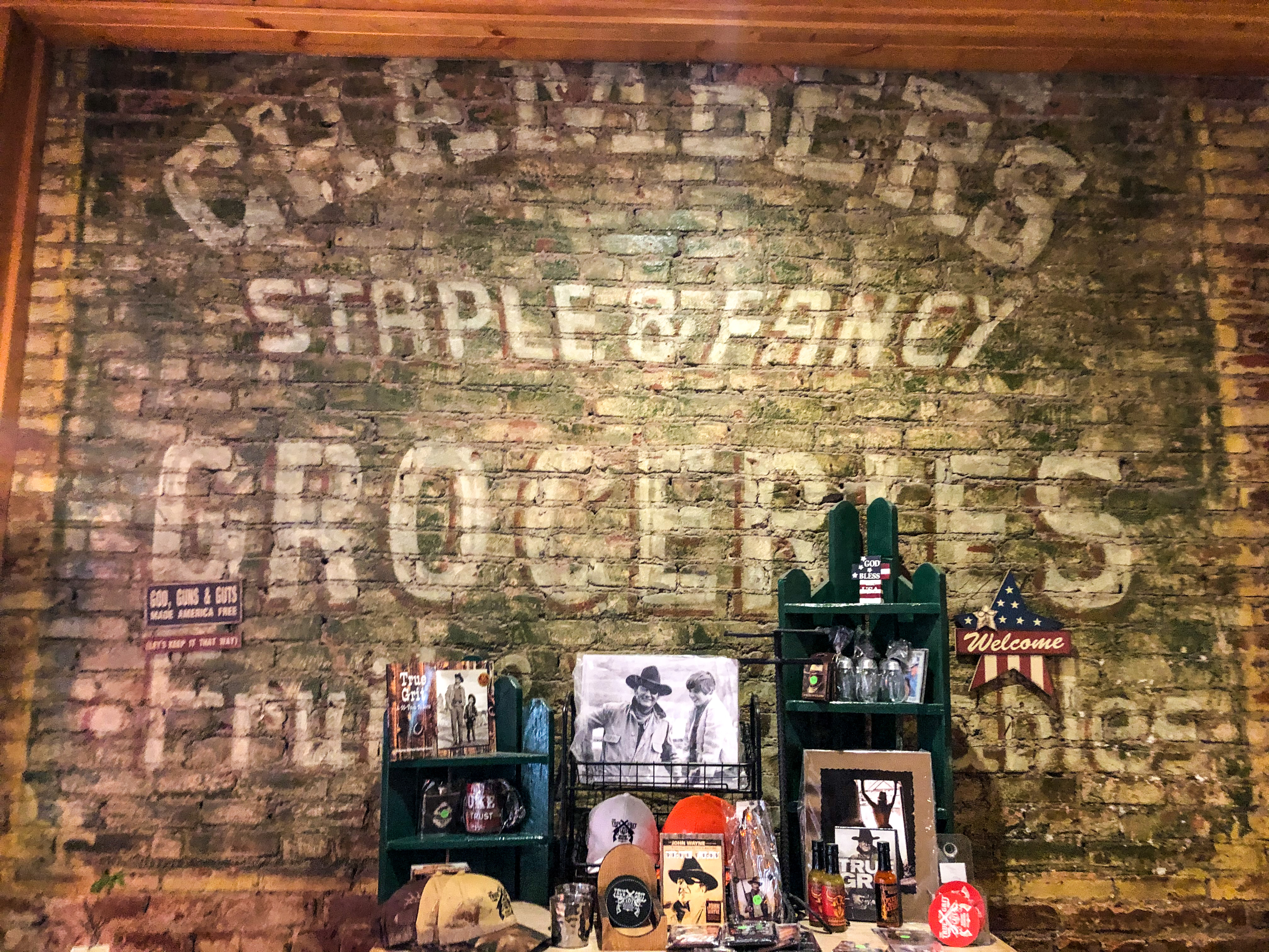 The outside of the store as depicted above is now the inside of the True Grit Cafe. Looking at both pictures, you can see that each bear the name of the store: Chambers Staple & Fancy Groceries! So cool!