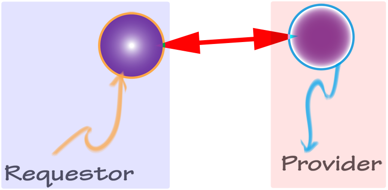 Once the connection between Blue and Orange is established...a peer-to-peer relationship can be created. Many of our components become transparent so the Requestors and Providers can do their job (communication and transferring data).