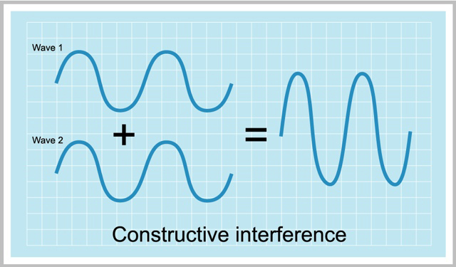 - Constructive Interference occurs where the two interfering waves have a displacement in the same direction.