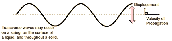 Transverse waves move perpendicular to the direction of travel. They cannot move through a liquid or gas because there is no mechanism for driving motion perpendicular to the propagation of the wave.