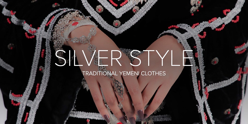 Traditional Sana’a dresses worn by women consist of velvet cloth, which has embroidery and silver stitched into it. A hat is covered with an embroidered and decorated fabric that matches the shape of the dress. In cultural fashion, the side of the face is also decorated with antique silver accessories using pieces of precious stones extracted from the mines of Yemen.