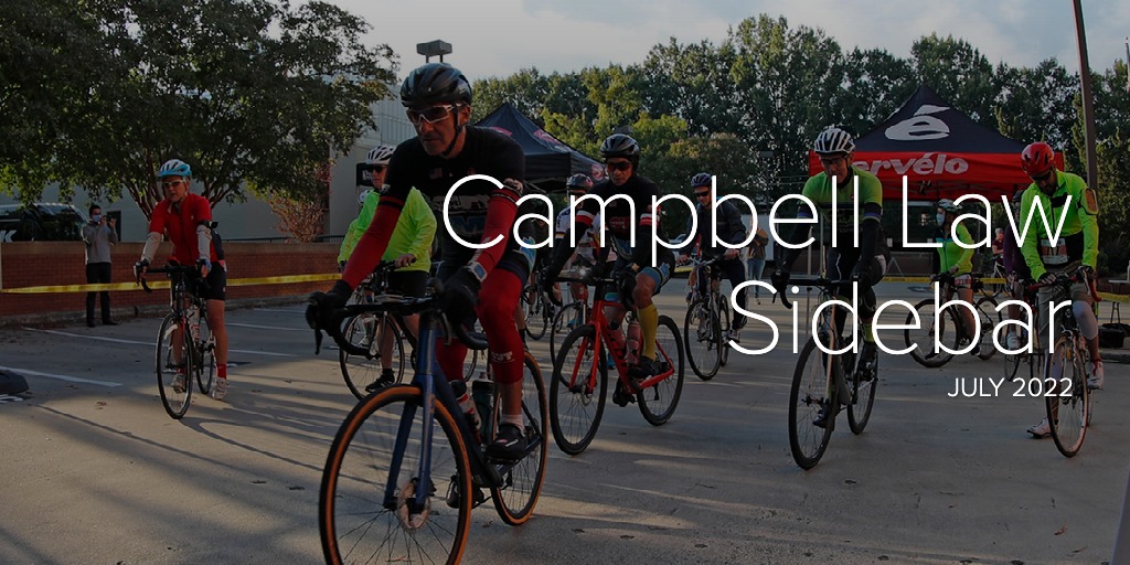 Campbell Law will host its Fourth Annual Fundraising Bike Ride on Saturday, Oct. 22. The ride, which is co-sponsored by TREK Bikes, Crabtree Mall, Raleigh Brewing Company, Raleigh Magazine, Attorney at Law Magazine and the Campbell Law Pro Bono Council, will once again offer a 10- to 12-mile family ride, a 40- to 50-mile ride and a virtual ride option. Register here.