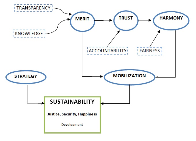 It's leadership paradigm is built on Recognition and driven by knowledge that naturally generates Influence, Commitment and Respect by all and from all the members of the organization. An organization's merit is a product of Knowledge and Transparency and thus, a recognised and respected leader can be empowered by the energy of all the members of an organisation.