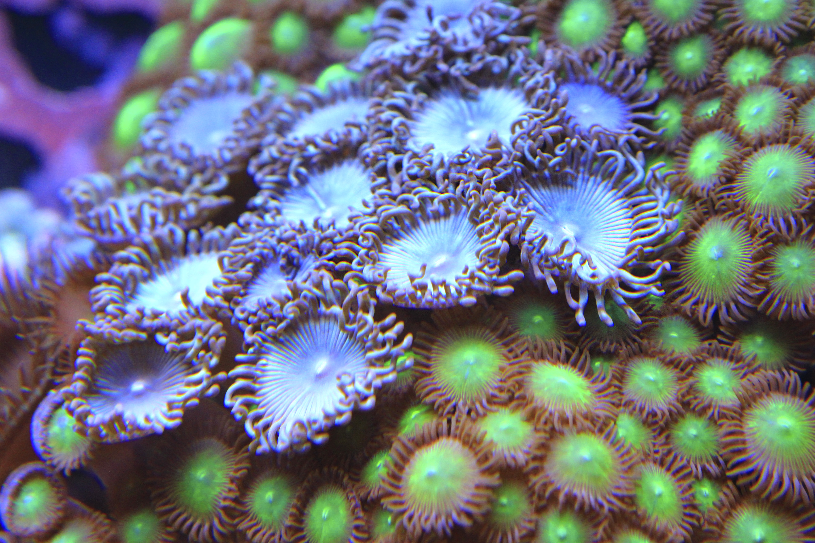A Saltwater coral reef is a natural barrier made of the bodies of billions of living and dead coral polyps. Despite looking like plants, corals are actually colonies of tiny animals related to jellyfish and sea anemones.The stunning array of colours and shapes are created by nearly 600 different varieties of coral found in the Great Barrier Reef. Coral polyps grows just below the surface to a depth of up to 60 m in warm climates where there is clear salt water and sunlight.