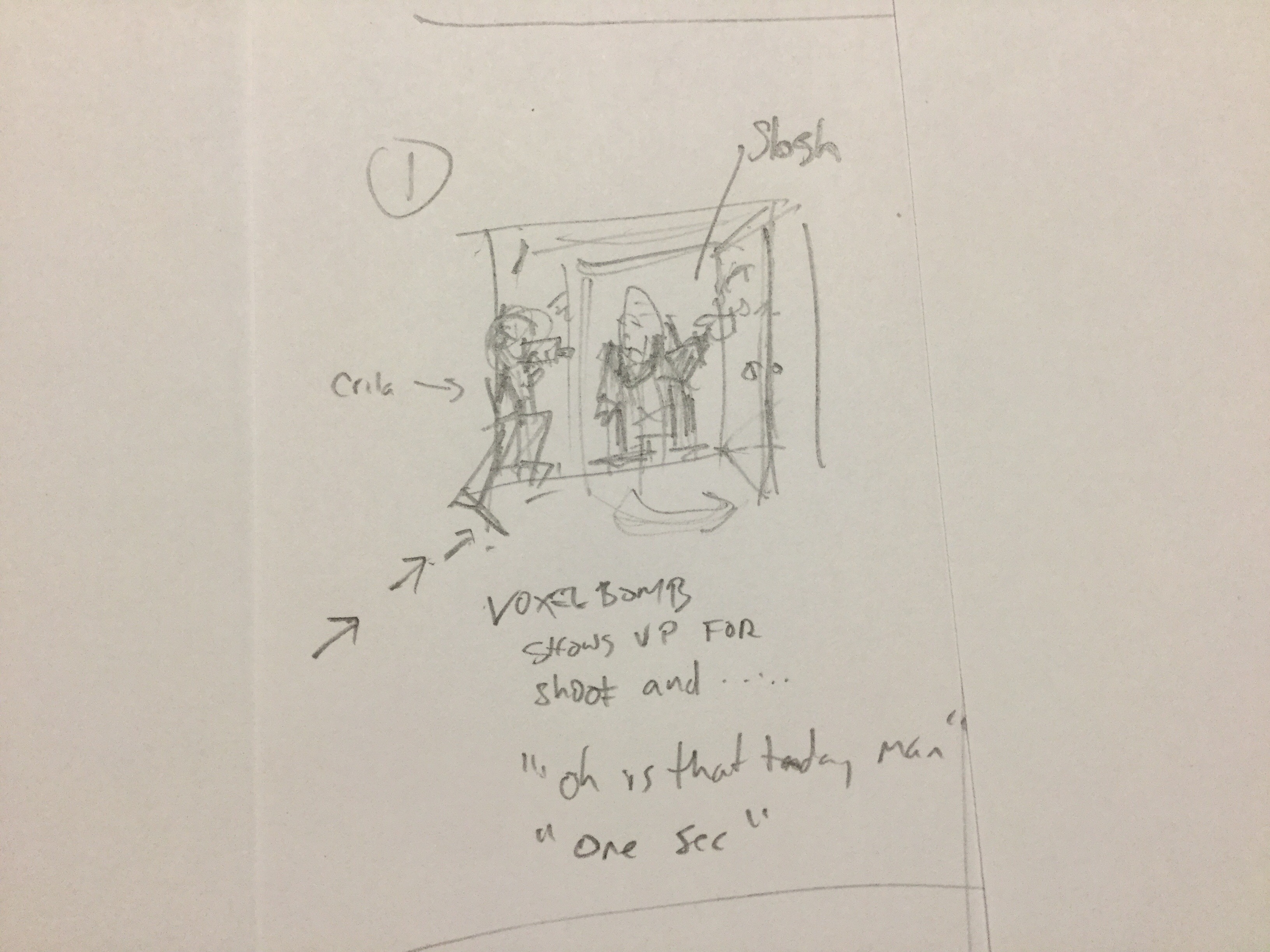 Meanwhile, the storyboard was getting finalized, and Chris had begun to lay down some music tracks, so we had the beginnings of where we were headed before filming began.