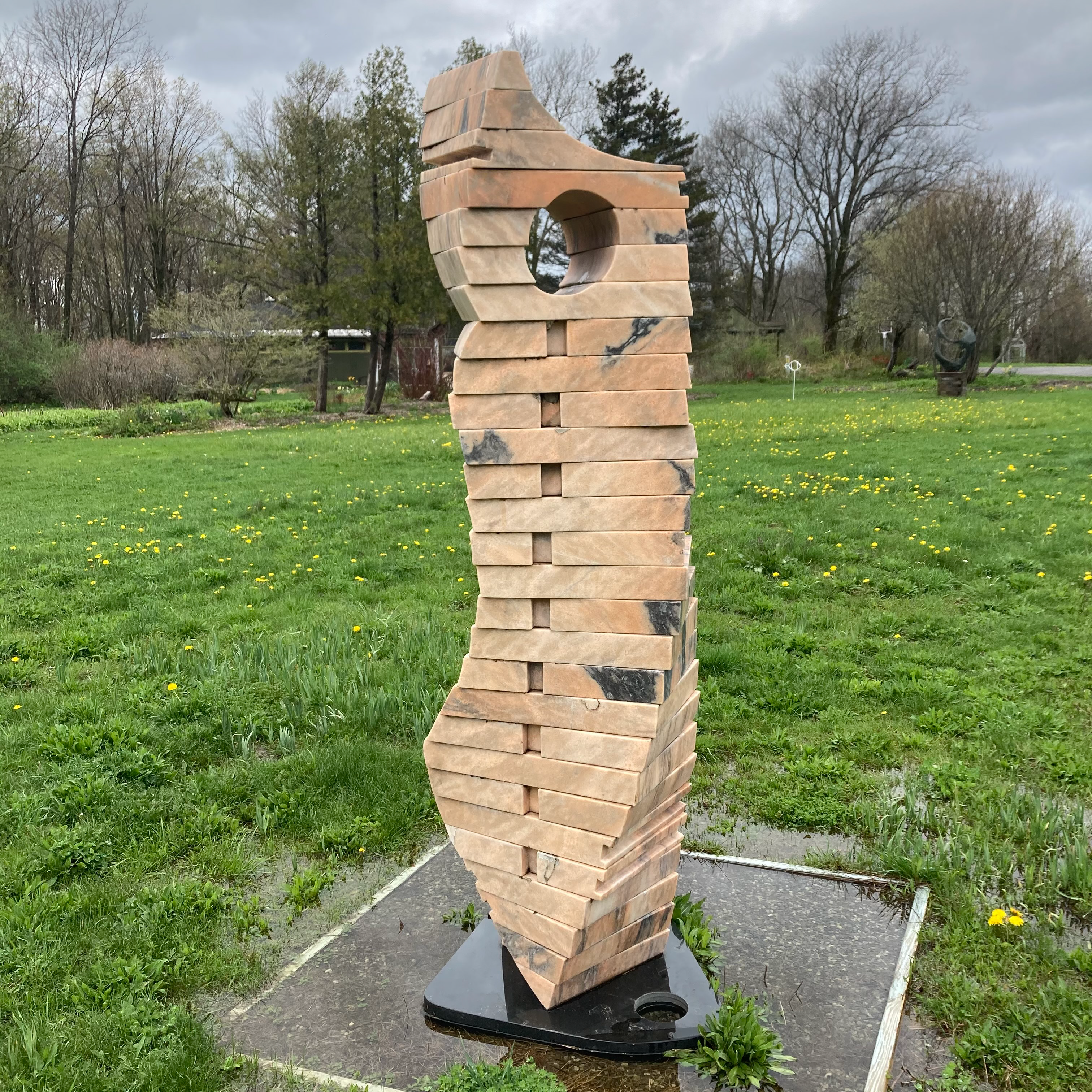Mack was a renowned sculptor and Syracuse University professor. He was inspired by “everyday experiences, from the shape of a shadow to a musical composition.” Mack was a close friend of the Art Park founders Dorothy and Bob Riester, and several of his sculptures are on the grounds. Jazz Diz references trumpeter Dizzie Gillespie, known for his layers of harmony and complex improvisation.