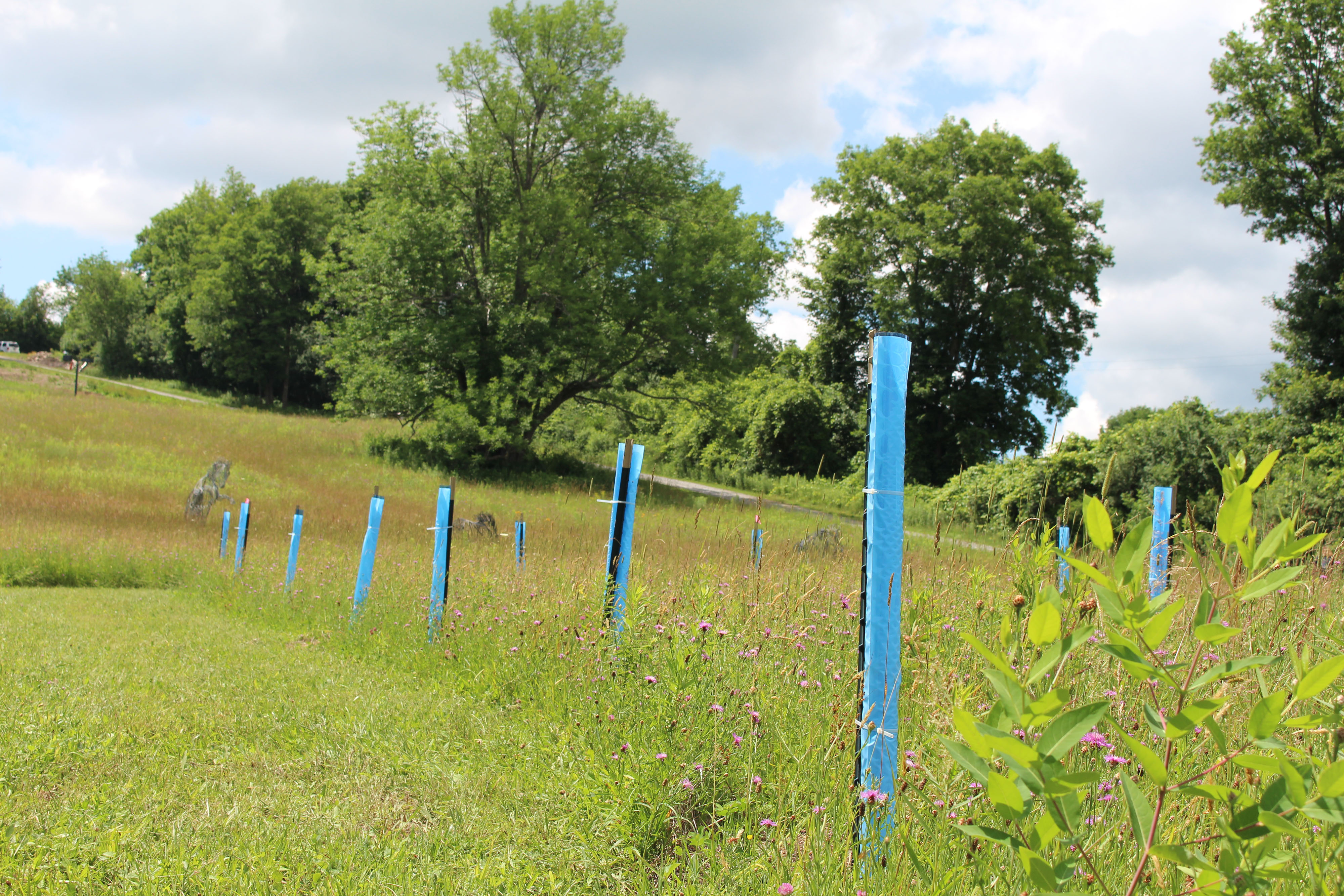 The 220 saplings, donated by U-CAN and planted in late spring of 2020 and added to in 2021, will grow to capture carbon— an action to prevent the release of carbon dioxide into the atmosphere— to support wildlife and mitigate contributions to global warming. The arrangement of trees in the park, designed by graduate students in SUNY ESF's landscape architecture program, offer an aesthetic and sensory journey, turning trees and landscape into an experiential art installation. Watch the saplings grow, snugly wrapped in a protective tree tubes that dot the landscape with bright spots of blue.