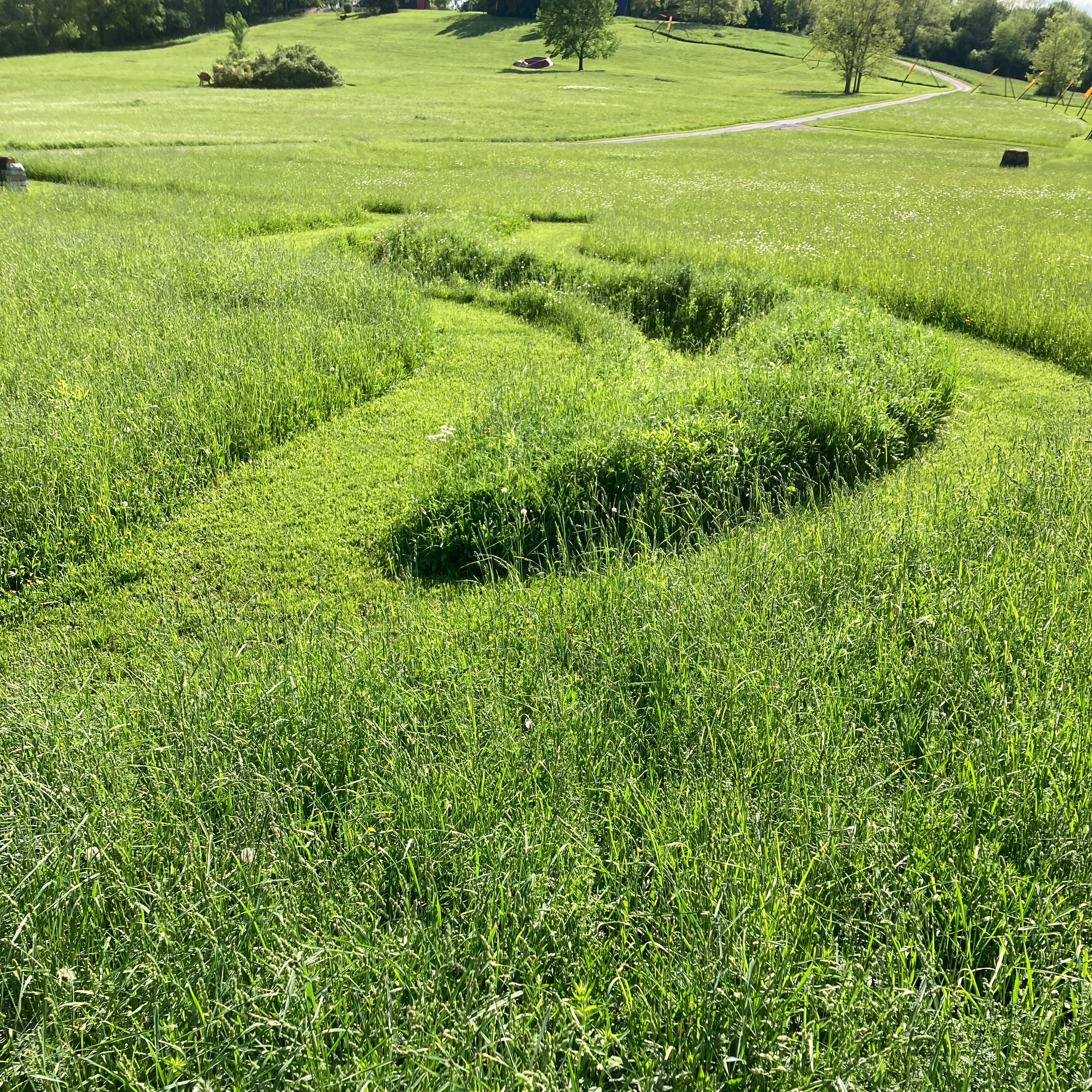 By combining clay loam topsoil, lime, and water, shoveling the mixture into molds, and tamping, Xinan Ran and collaborator Sarah Lammer created 3D letters on three sites on the grounds. The sculptural texts, "hurry", "worrying and wondering", and "wingwoman", are drawn from Ran's ongoing collection of overheard conversations, internet reviews, and found text. Visitors are encouraged to take selfies with the ground texts. Read an interview with the artist to learn more about this work.