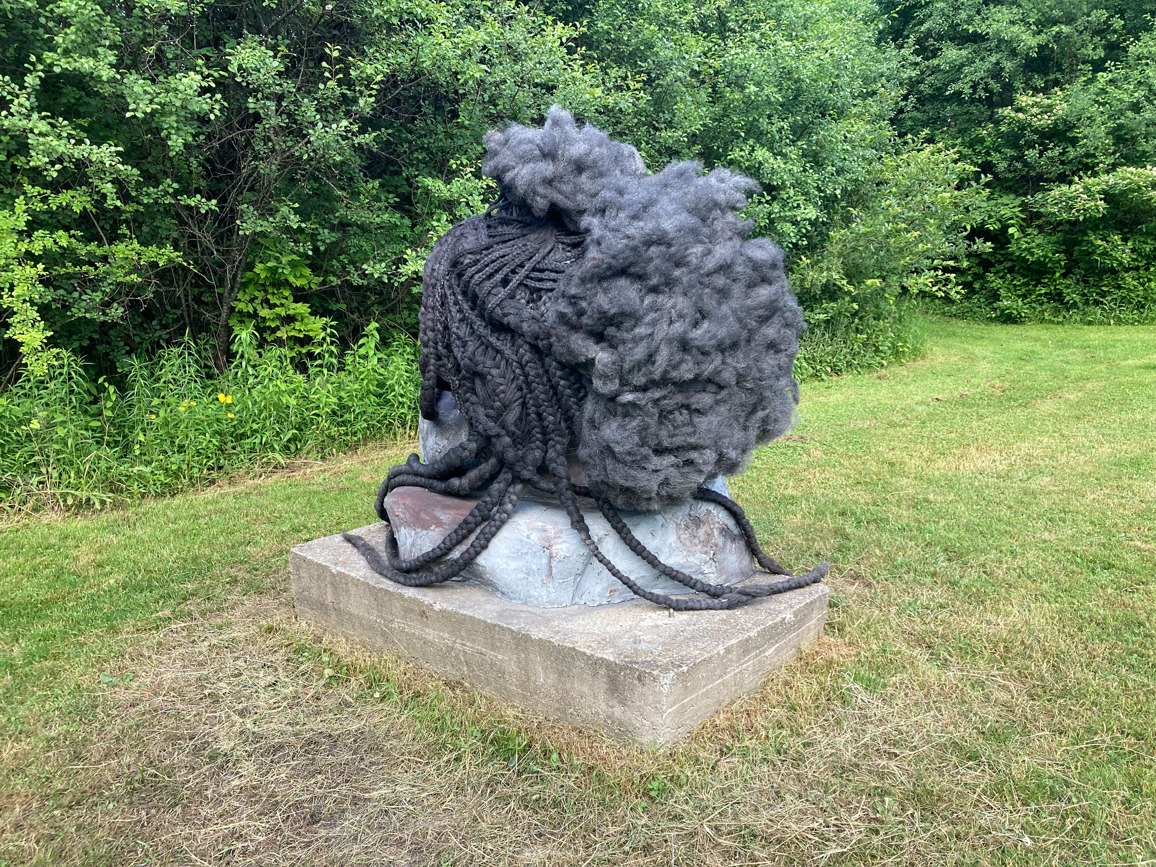 Super Natural is a new work by 2022 visiting artist Jen Dawson. Dawson employs materials with the capacity to carry loaded meanings around gender, race, and sexuality. Super Natural contains 30 pounds of braided steel wool that will rust and change over time, which challenges the implied permanence of sculpture.