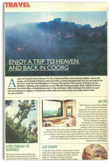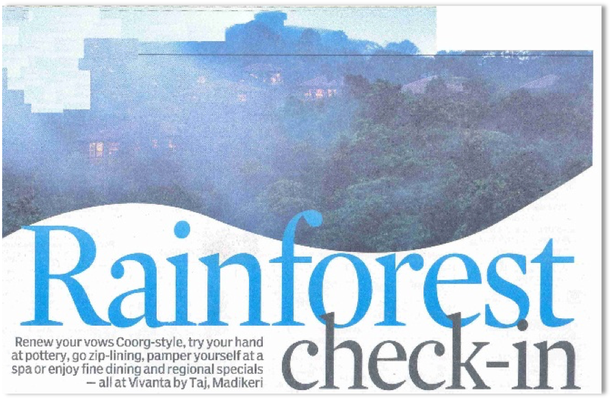 Taj Coorg is now universally hailed as a “Rainforest” retreat by guests, media and influencers thereby creating a new category in Coorg as a destination