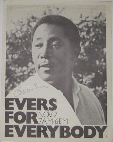 Medgar Ever’s brother Charles also ran for public office in 1971 and his hopes were focused on becoming the first black Governor of Mississippi. Charles, always a controversial figure, had returned home from Chicago upon the death of his brother and had taken over as field director of the NAACP in Mississippi. Charles had subsequently been elected mayor of Fayetteville in 1969 and became the first African American mayor of a bi-racial town in the state of Mississippi since Reconstruction. When he was elected mayor all of the white members of the police department resigned rather than serve under a black administration.