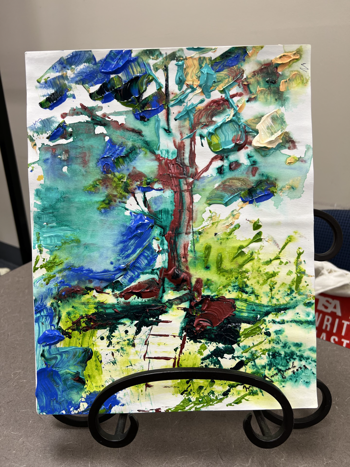 The Crimson Circle typically meets twice a semester, with one meeting consisting of informational content and one meeting connecting to socialization, giving back to others, or community engagement. A recent highlight from the group was the inaugural Crimson Circle Creativity Exhibit. This event was held in April of 2023 at the UA Speech and Hearing Center and consisted of each member of the Crimson Circle displaying one of their creative talents/interests with the Department of Communicative Disorders faculty, staff, and students. Client displays included artwork, recipe and book reviews, and music. It was a wonderful experience for all involved!