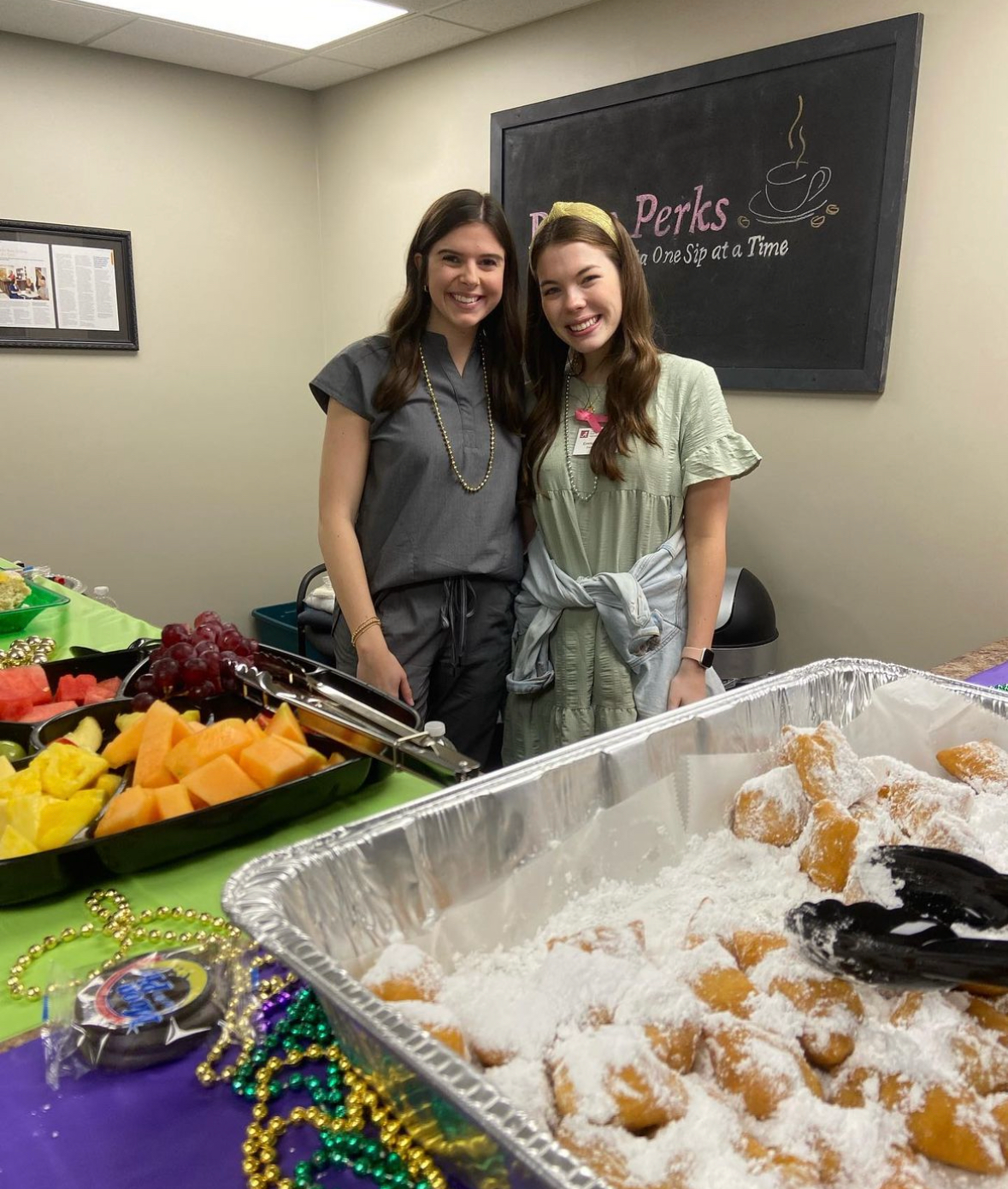 Our first meeting of 2023 was in February with guest speaker, Jenny Bjorem, M.A., CCC-SLP. Jenny is a Childhood Apraxia of Speech Specialist and she provided an insightful presentation about her journey as an SLP and her approaches to therapy for children with apraxia of speech. During the meeting, we announced our Selma School Drive to help support schools in Selma that were affected by a recent tornado. In total, we had over 300 items donated, including 1,248 crayons, 79 sticks of glue, and 663 pencils. Later that month, we held a Mardi Gras Social where our members could connect, participate in games and activities, and snack on famous Mardi Gras foods, including fresh beignets and king cake.