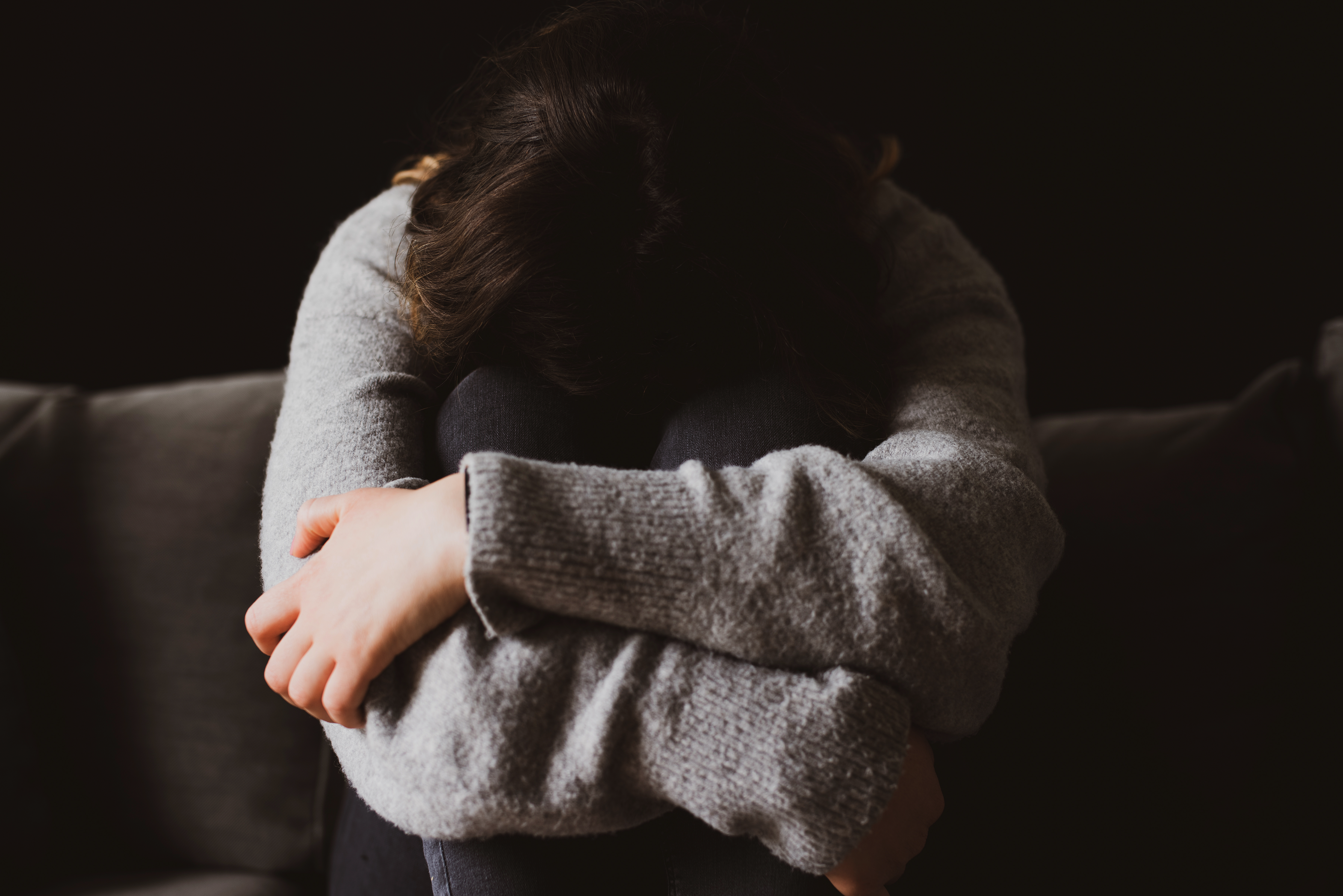Created with images by • undefined - Verzweifelte und traurige junge Frau • undefined - Hand holding red heart, World health day, Health care and mental health concept, Health insurance, Charity volunteer donation, CSR responsibility, World heart day, Self love