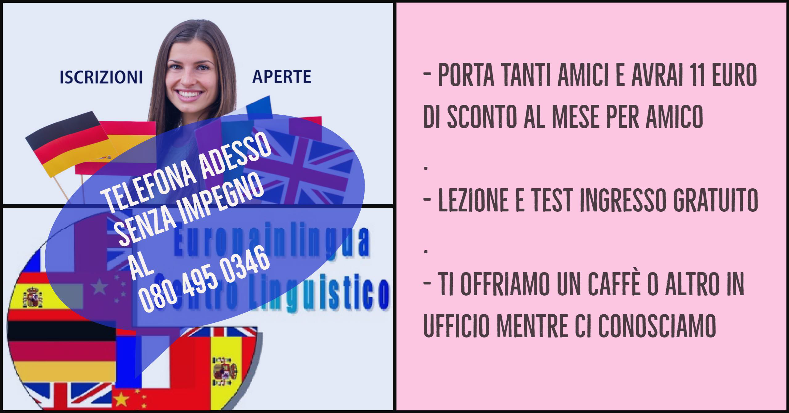 Europainlingua a Conversano, Bari è una rinomata scuola di lingue che offre un'ampia gamma di corsi di lingua per studenti di tutte le età e livelli. Situata in una delle città più affascinanti della Puglia, Europainlingua offre un ambiente stimolante e accogliente per imparare una nuova lingua.