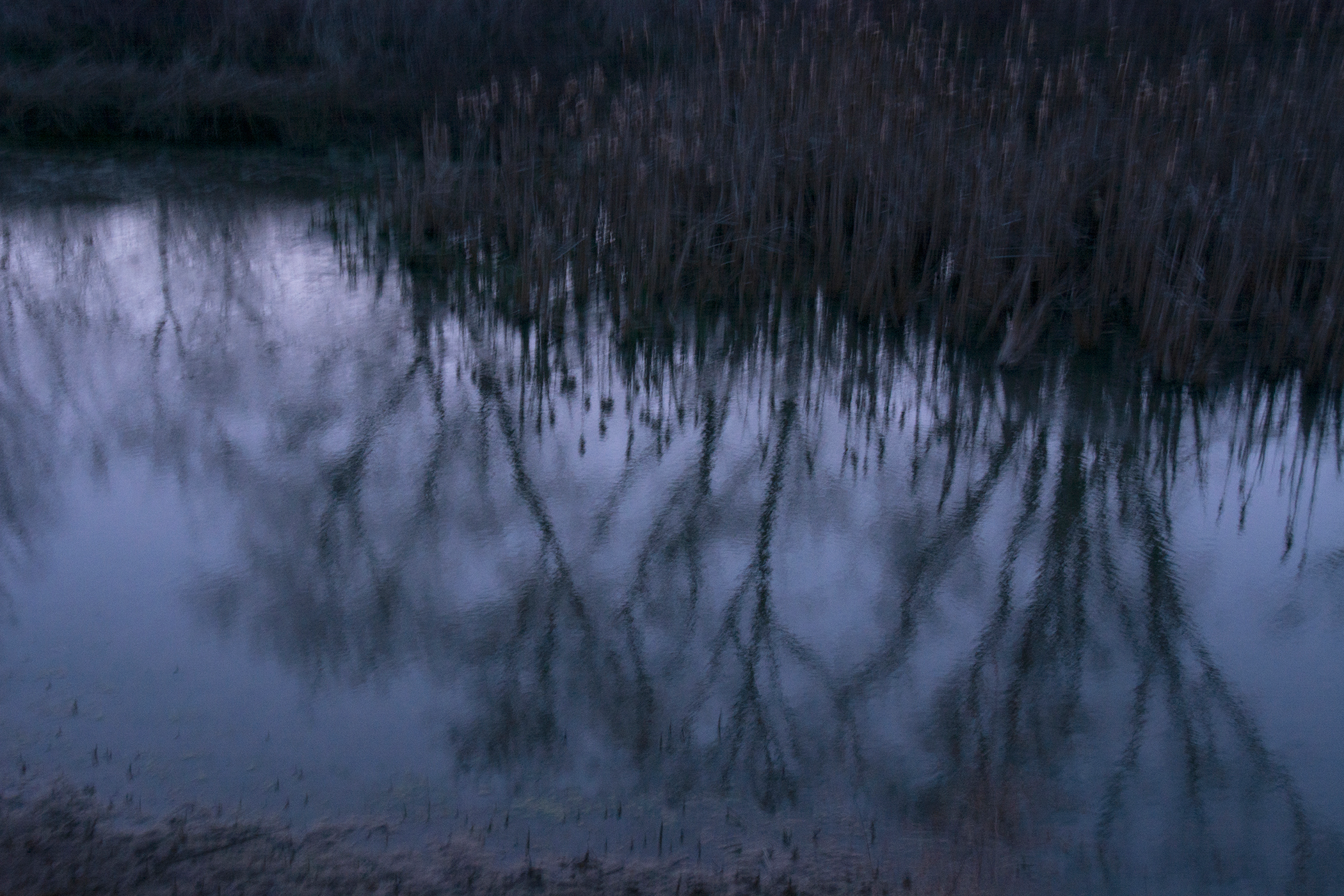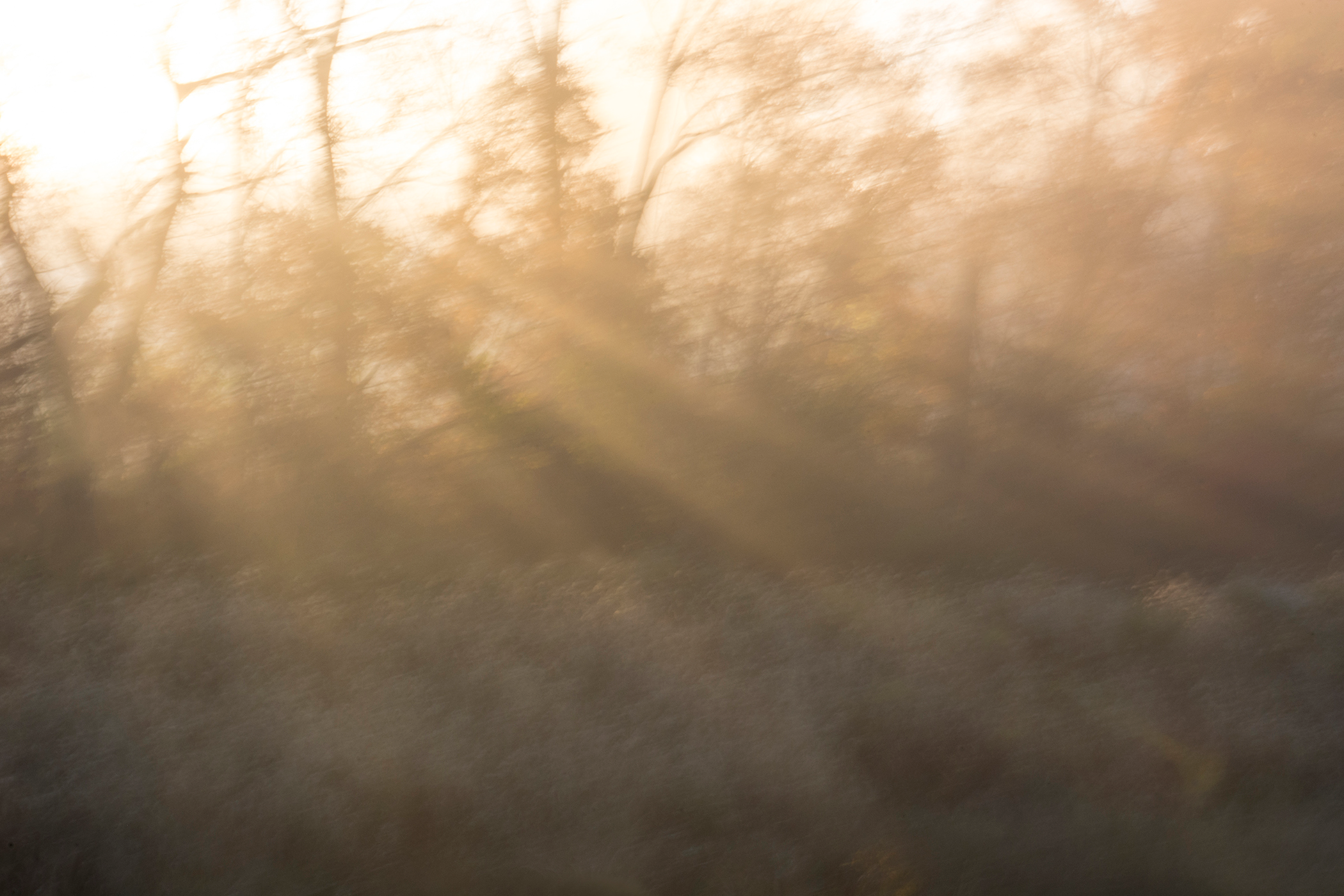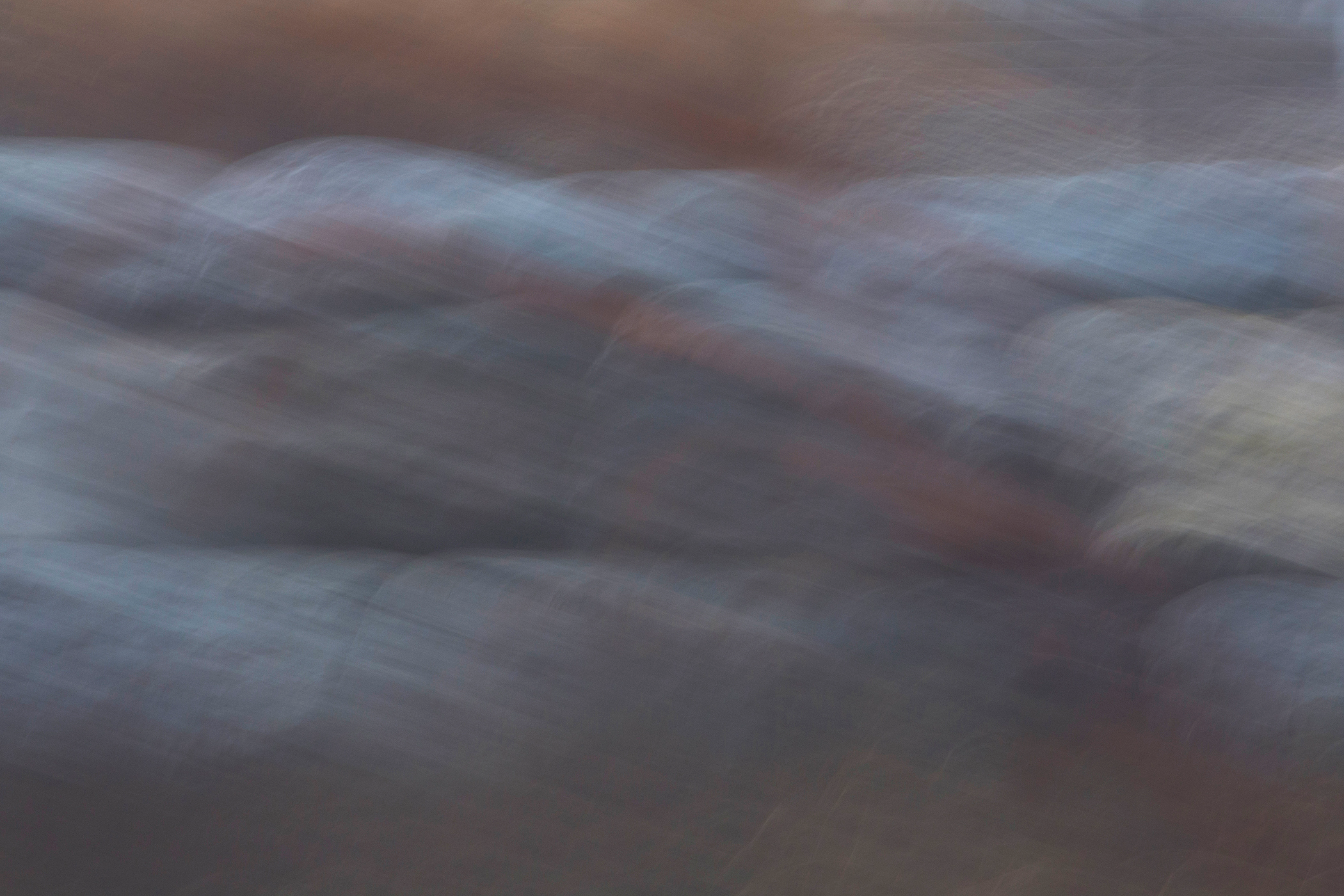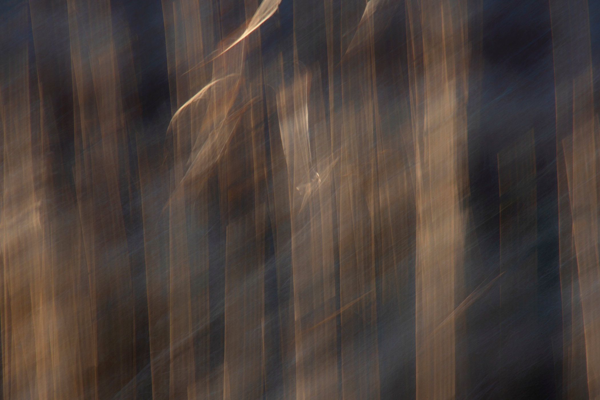 Soon I was photographing in the habitat just behind where I live: a small catchment basin, foxtail grasses, a dancing row of hickory and mulberry trees, a galaxy of birds, and farm fields reaching toward the distance. Allowing my animated hand to direct the camera and shooting with a slow shutter in four seasons, I simply gave my shaking its due.