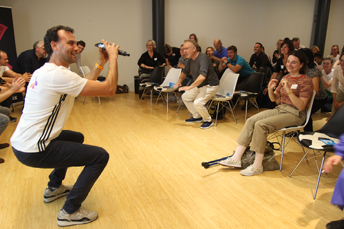 ‘Wie haalt hier in de zaal de beweegnorm?’ Bas van de Goor, initiatiefnemer van de Nationale Diabetes Challenge en gespreksleider van deze bijeenkomst, stelt de vraag aan de zaal. Er gaan aardig wat handen omhoog, maar lang niet allemaal. De norm stelt dat volwassenen wekelijks ten minste twee en een half uur matig tot intensief moeten bewegen en het liefst nog spier- en botversterkende activiteiten doen.