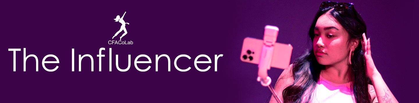 The Influencer (Nina) has thousands of followers and spends her day documenting every moment of her life in selfies. She is innocent yet practical, and genuinely excited about everything she encounters.